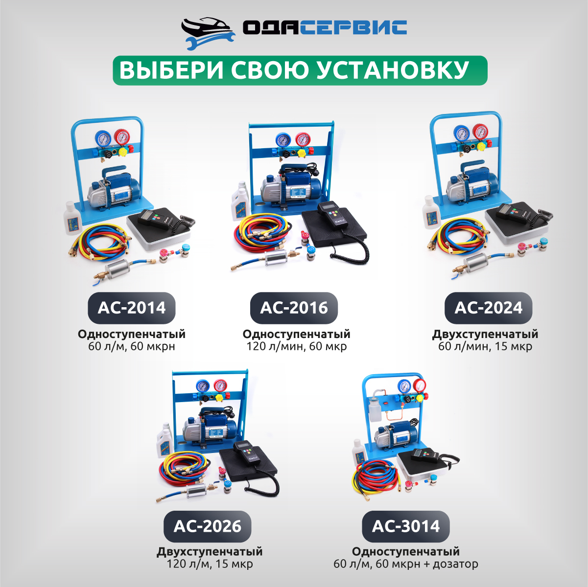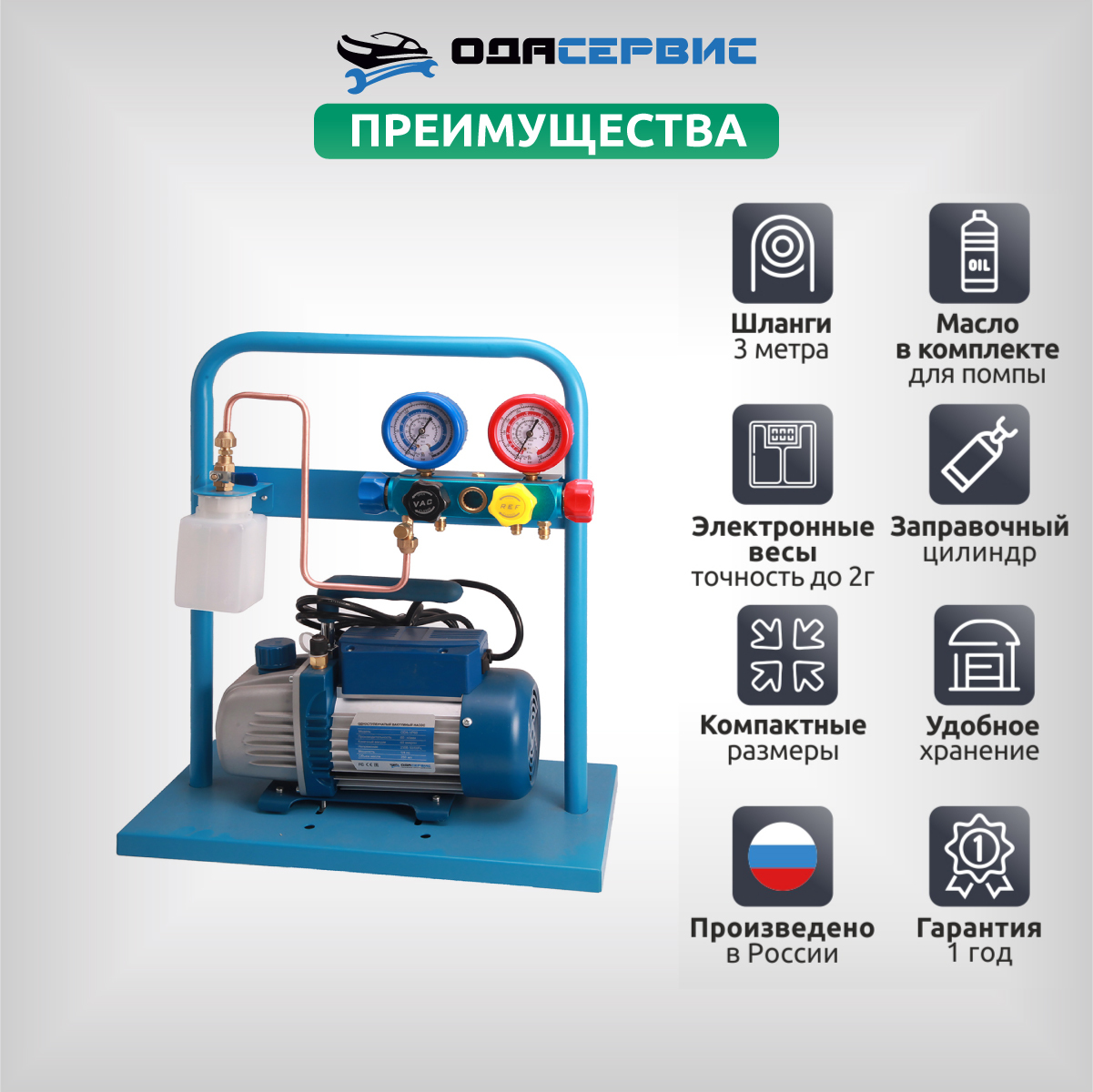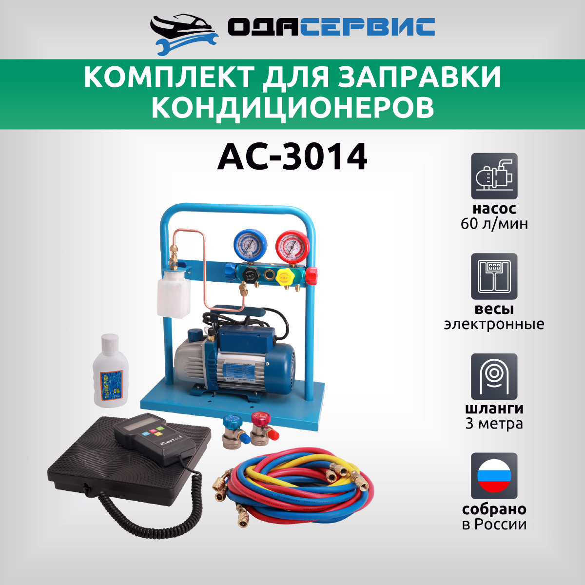 Комплект для заправки кондиционеров, compact с функцией заправки масла ОДА Сервис AC-3014