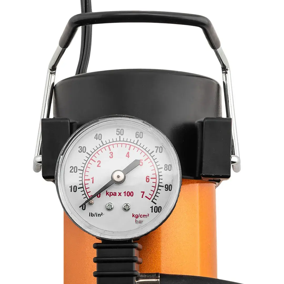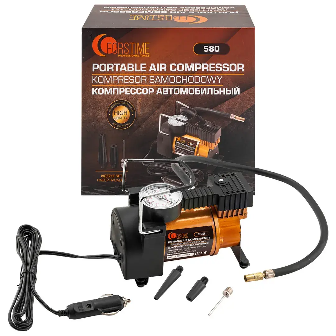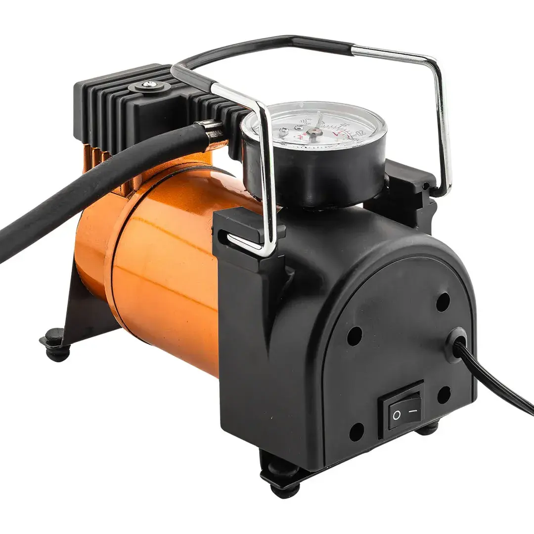 Компрессор поршневой автомобильный одноцилиндровый с аналоговым манометром - это лучшее решение для быстрой и удобной подкачки шин в дорожных условиях. Насос рассчитан на длительную эксплуатацию в различных климатических условиях. Переносная сумка дает возможность удобно переносить и хранить компрессор, а также защищает его от различных механических повреждений. В комплекте представлены не только сам поршневой одноцилиндровый компрессор, но и различные сменные насадки, что позволяет использовать насос также и для накачки резиновых лодок, мячей и надувных матрасов. Напряжение 12В, Ток 10А, Производительность 30л/мин, Рабочее давление 7бар, Диаметр цилиндра 30мм, Длина сетевого кабеля 3м, Время непрерывной работы 20мин, Диапазон рабочих температур -30 - +50 °С, Длина резинового шланга 0.6м