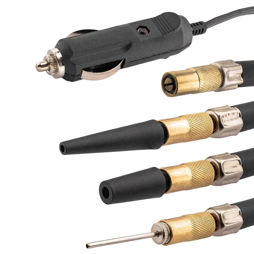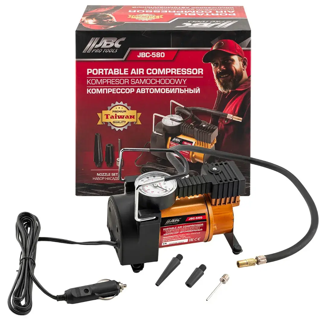 Компрессор поршневой автомобильный одноцилиндровый с аналоговым манометром - это лучшее решение для быстрой и удобной подкачки шин в дорожных условиях. Насос рассчитан на длительную эксплуатацию в различных климатических условиях. Переносная сумка дает возможность удобно переносить и хранить компрессор, а также защищает его от различных механических повреждений. В комплекте представлены не только сам поршневой одноцилиндровый компрессор, но и различные сменные насадки, что позволяет использовать насос также и для накачки резиновых лодок, мячей и надувных матрасов. Напряжение 12В, Ток 10А, Производительность 30л/мин, Рабочее давление 7бар, Диаметр цилиндра 30мм, Длина сетевого кабеля 3м, Время непрерывной работы 20мин, Диапазон рабочих температур -30 - +50 °С, Длина резинового шланга 0.6м