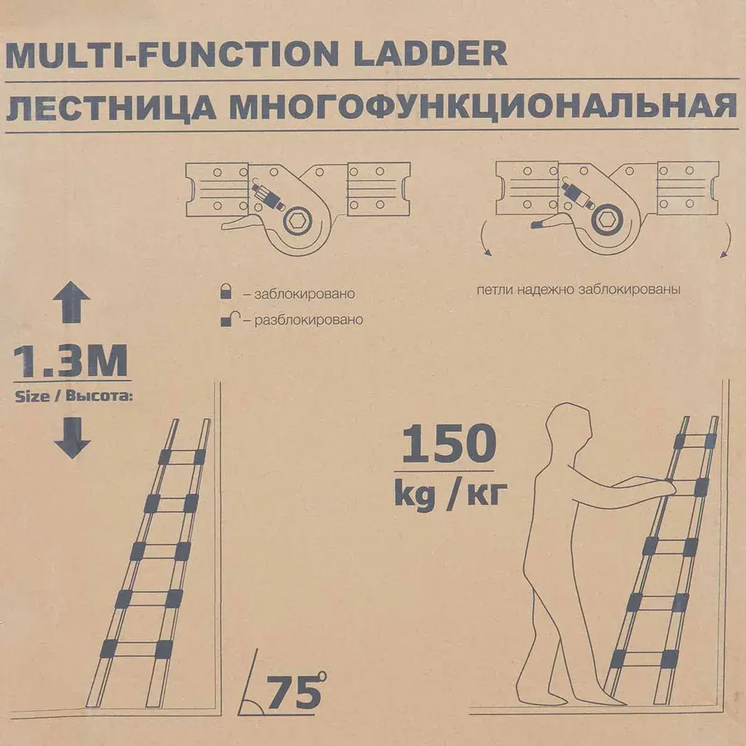 Лестница-стремянка телескопическая алюм. бытовая 1.3+1.3м (4+4 ступ.) ISMA ISMA-UP130-M