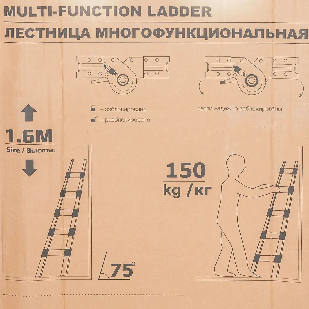 Лестница-стремянка телескопическая алюм. бытовая 1.6+1.6м (5+5 ступ.) ISMA ISMA-UP160-M