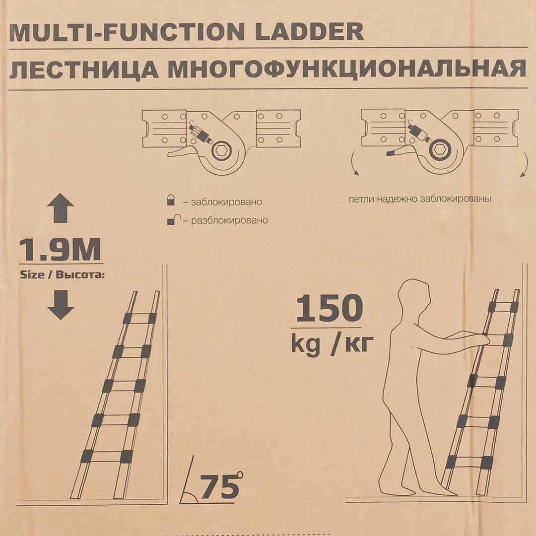 Лестница-стремянка телескопическая алюм. бытовая 1.9+1.9м (6+6 ступ.) ISMA ISMA-UP190-M