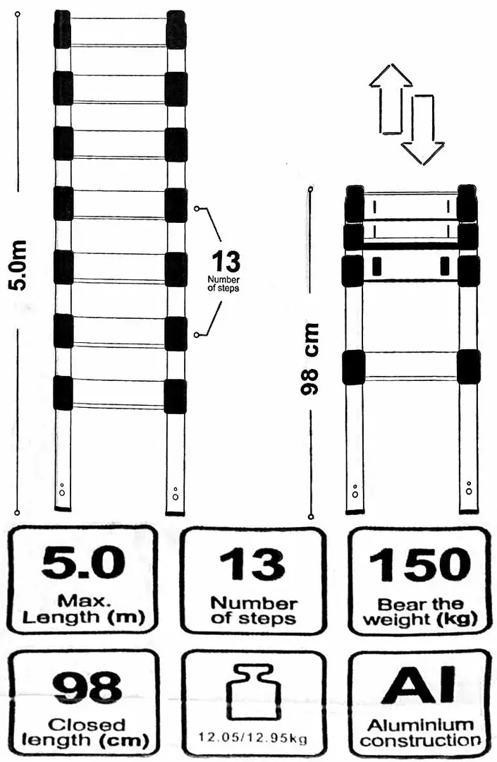 Лестница телескопическая алюм. бытовая 5.0м (13 ступ.) Scheppach Sch-UP500