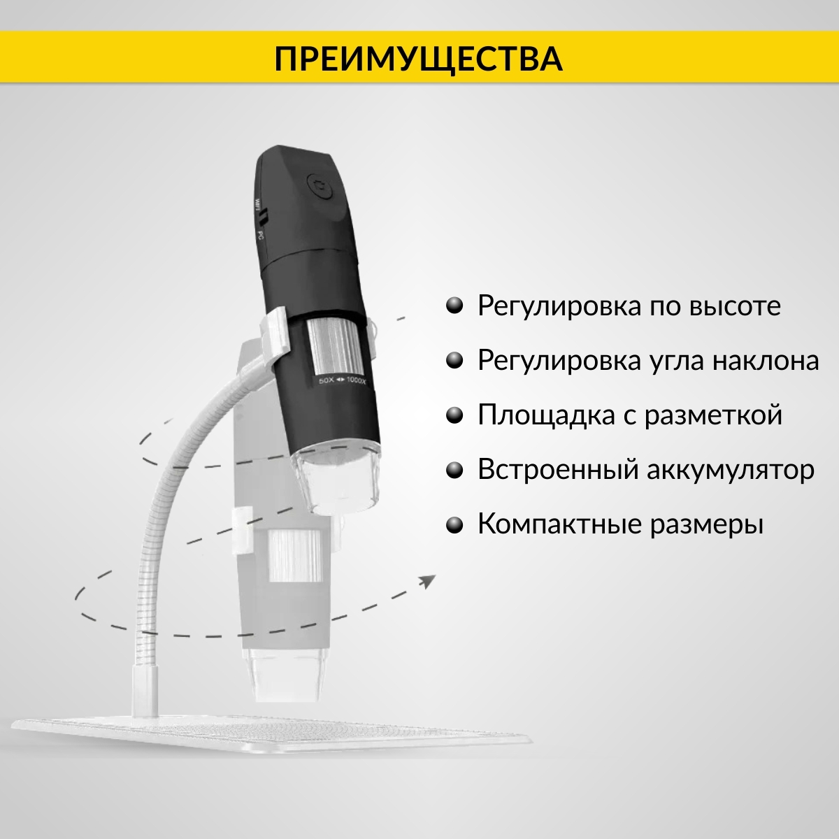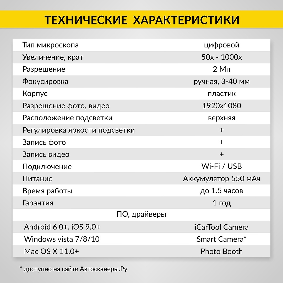 Микроскоп цифровой WIFI/USB, 2Мп, 1000X, 1920x1080 iCartool IC-V316