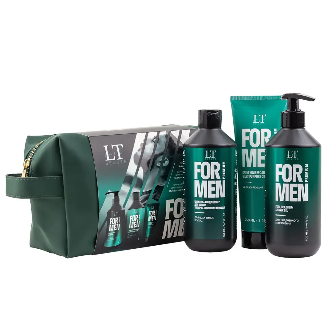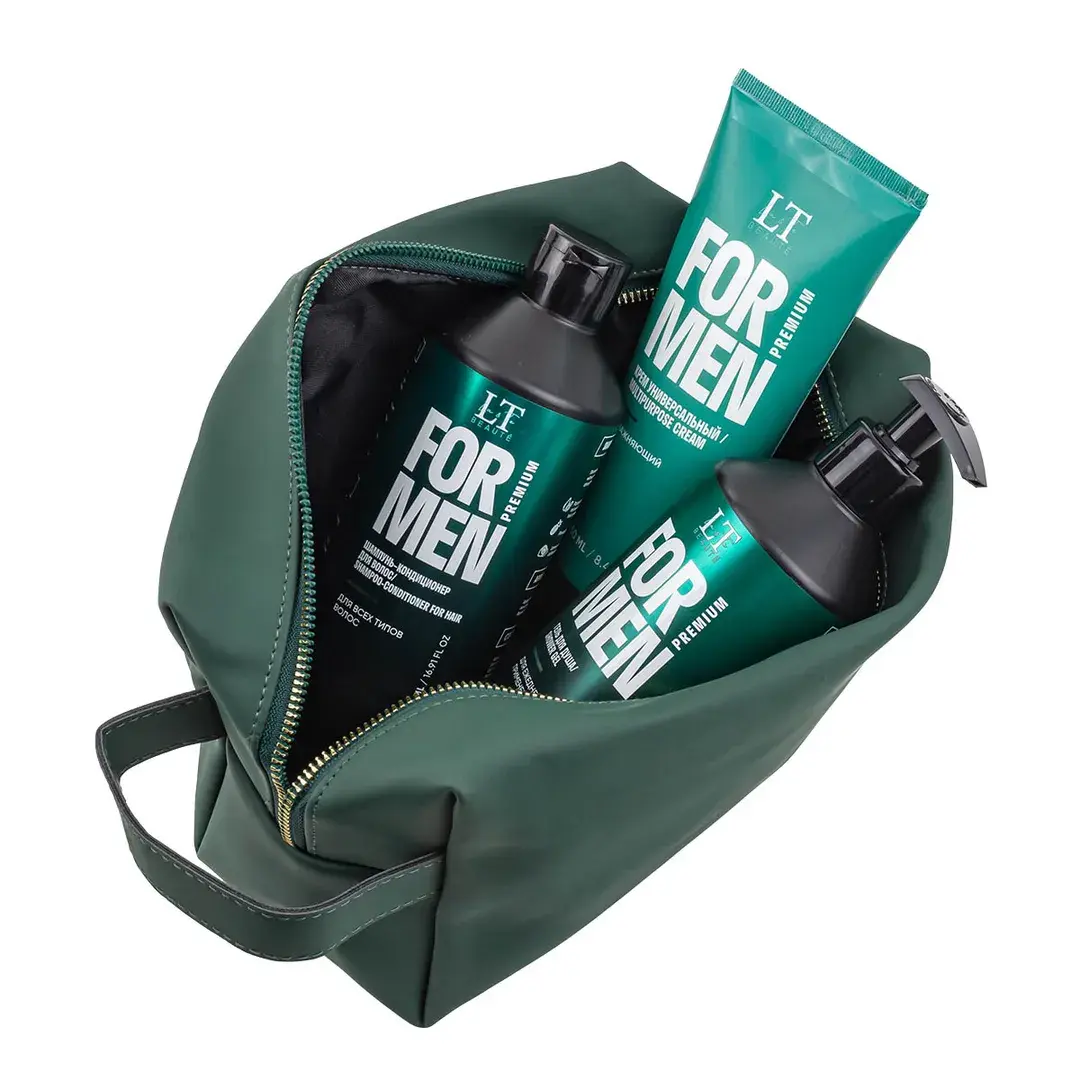 Мужской подарочный набор (гель LT-2357,шампунь LT-2340,крем LT-2388,bag3 (зеленая)+уп)