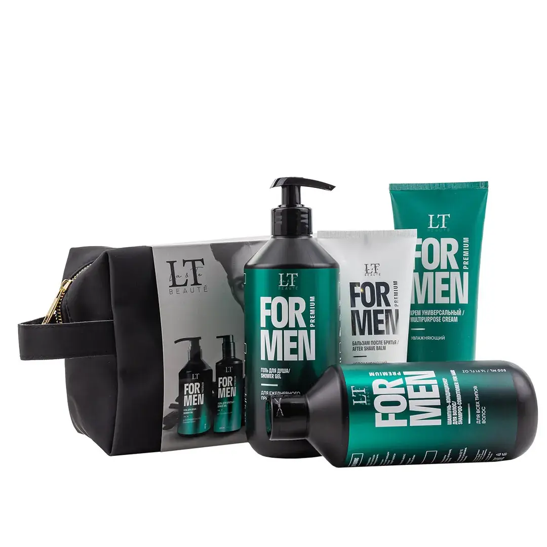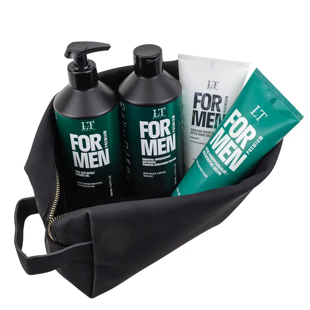 Мужской подарочный набор (гель LT-2357,шампунь LT-2340,крем LT-2388,бальзам LT-2371,bag4 (черная)+уп)