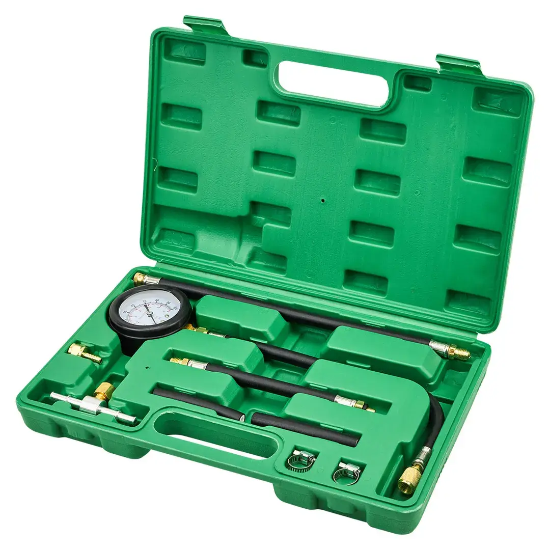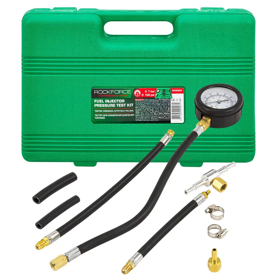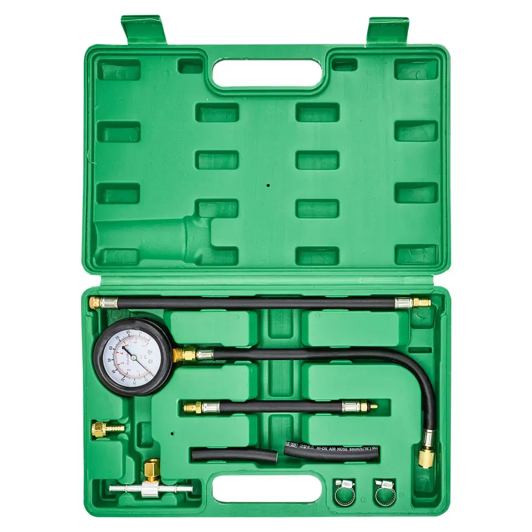 Манометр для измерения давления топлива в комплекте с переходниками 9пр. в кейсе применим для быстрого и точного измерения давления на цилиндре бензинового двигателя. Показания тестера поможет узнать компрессию и если есть отклонения от нормы модификации конкретного двигателя, это может свидетельствовать о неисправностях: поврежденный поршень, изношенные поршневые кольца, трещина в головке блока цилиндров, износ клапанов и др. Комплектация: манометр 0-7бар (0-100psi), шланги с быстросъемными соединениями, переходник, хомуты или стяжки. Манометр имеет большой циферблат с двойной цветной шкалой для легкого чтения показаний с двигателя. Подходит для большинства бензиновых автомобилей. Для удобства хранения и транспортировки поставляется в пластиковом кейсе.