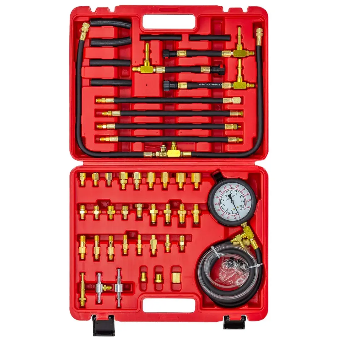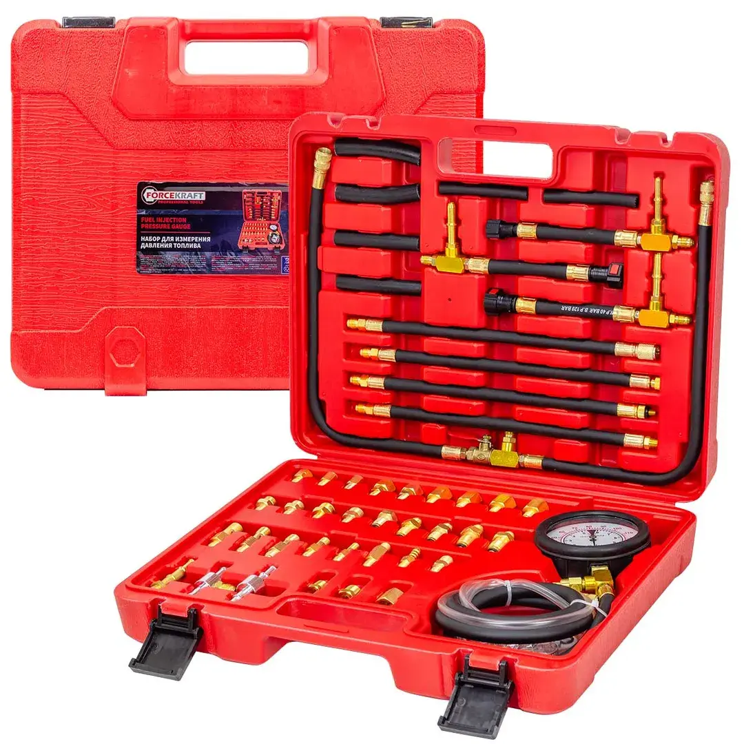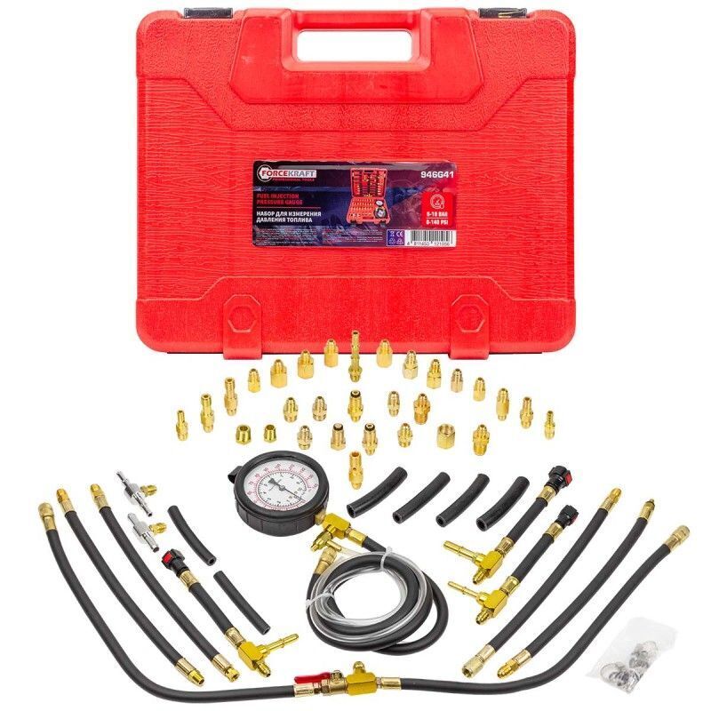 Измеритель давления топлива - надежный помощник для контроля систем впрыска топлива инжекторных двигателей. С максимальным измеряемым давлением до 7 кгс/см2 и классом точности 1,0 он обеспечивает точные измерения с погрешностью не более 0,01 (0,1) Мпа (кгс/см2). Продолжительный срок службы до 5 лет гарантирует надежность и долговечность инструмента. Шкала 0-10 bar, 0-140 PSI. Расширенная комплектация включает в себя переходники, резиновые шланги с резьбовыми наконечниками и адаптеры для различных марок автомобилей. Комплектация: манометр (от 0 до 10 бар), шланги гибкие с адаптером, тройник под шланги, адаптер, хомуты на шланг. Универсальный набор из 41 предмета позволяет производить тестирование топливных систем различных авто, выявлять неисправности и износ деталей топливного насоса и вакуумной системы. Манометр с защитным чехлом, легко читаемая двойная шкала, длинный прочный резиновый шланг и разнообразные адаптеры делают использование тестера максимально удобным. Он поможет определить неисправности, такие как плохая производительность топливного насоса, износ щеток якоря и другие проблемы в системе подачи топлива в двигатель. Этот инструмент станет незаменимым помощником при ремонте и обслуживании автомобилей на сервисах и СТО. Для удобства хранения и транспортировки в комплекте предусмотрен прочный пластиковый кейс.