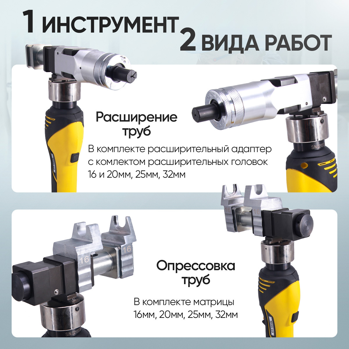 Набор для опрессовки и расширения труб PEX аккумуляторный, гидравлический Car-Tool CT-1632L