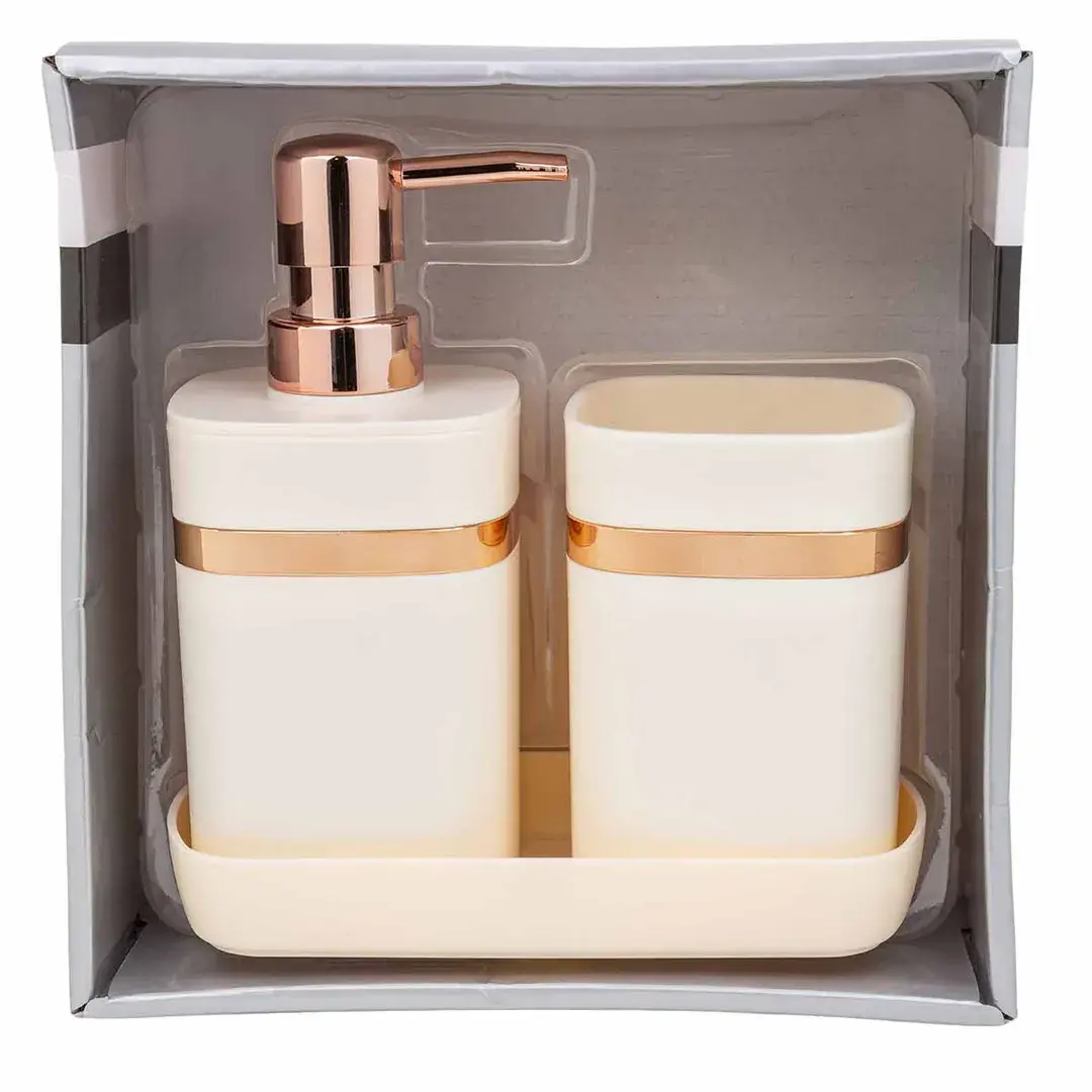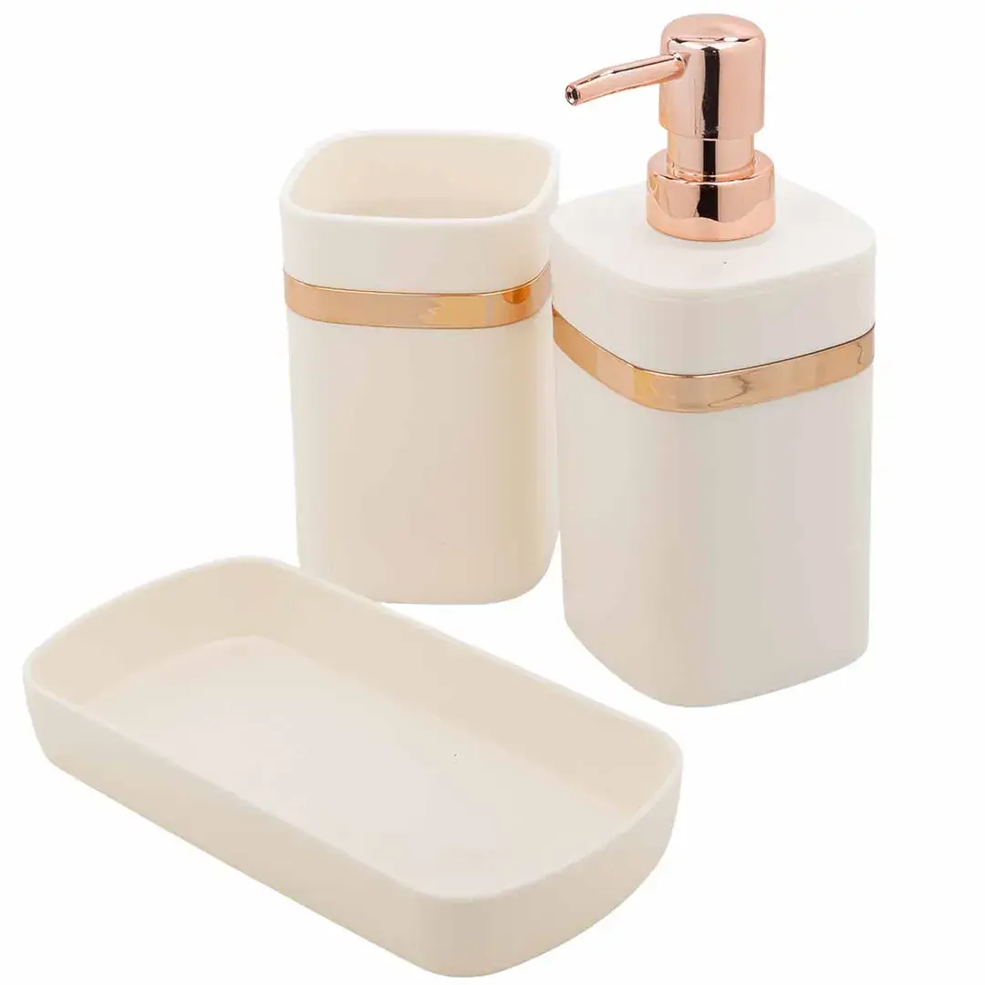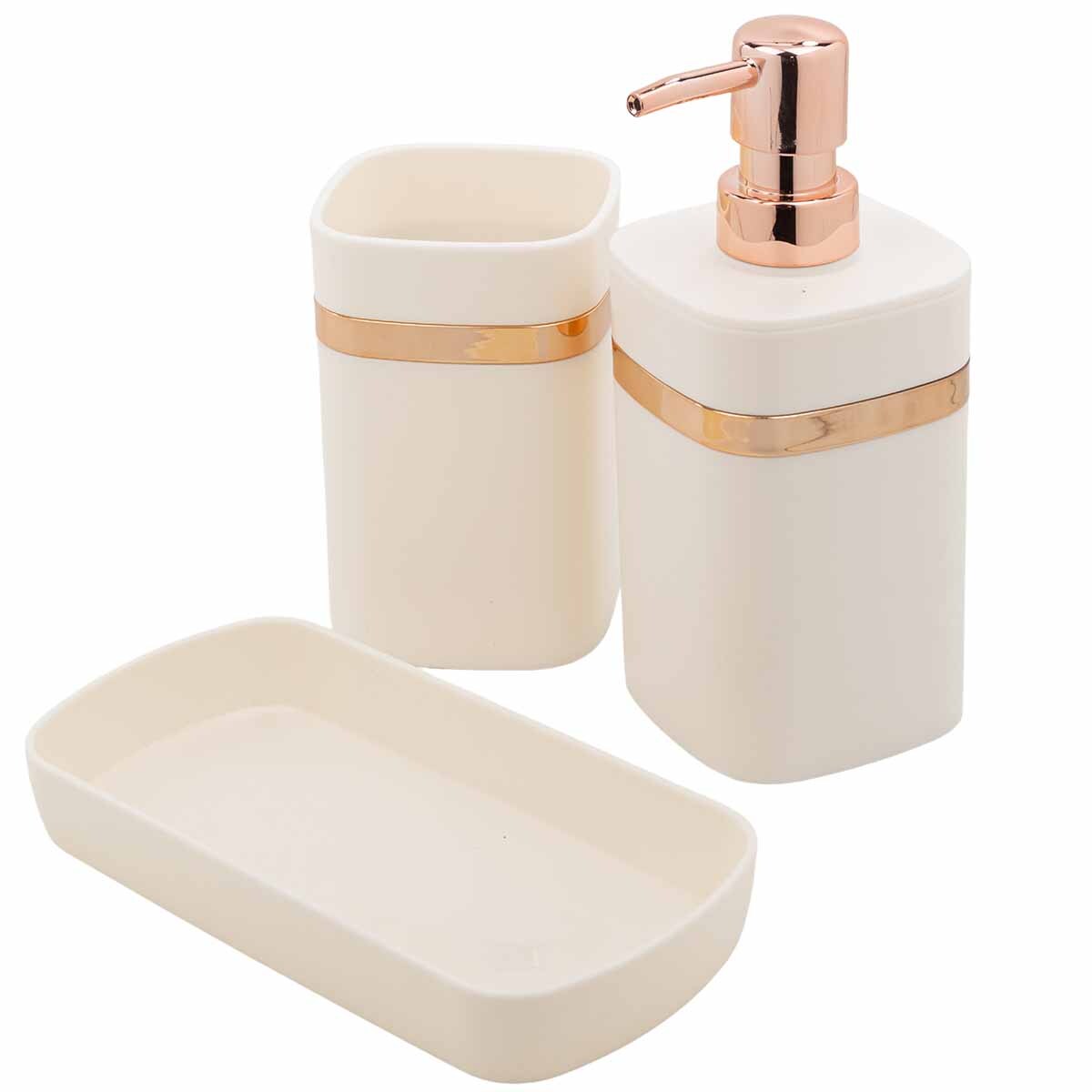 Набор для ванной комнаты 3пр. (дозатор для мыла, подставка для зубных щеток, лоток для аксессуаров) La and Te beaute LT-BSP-10WH