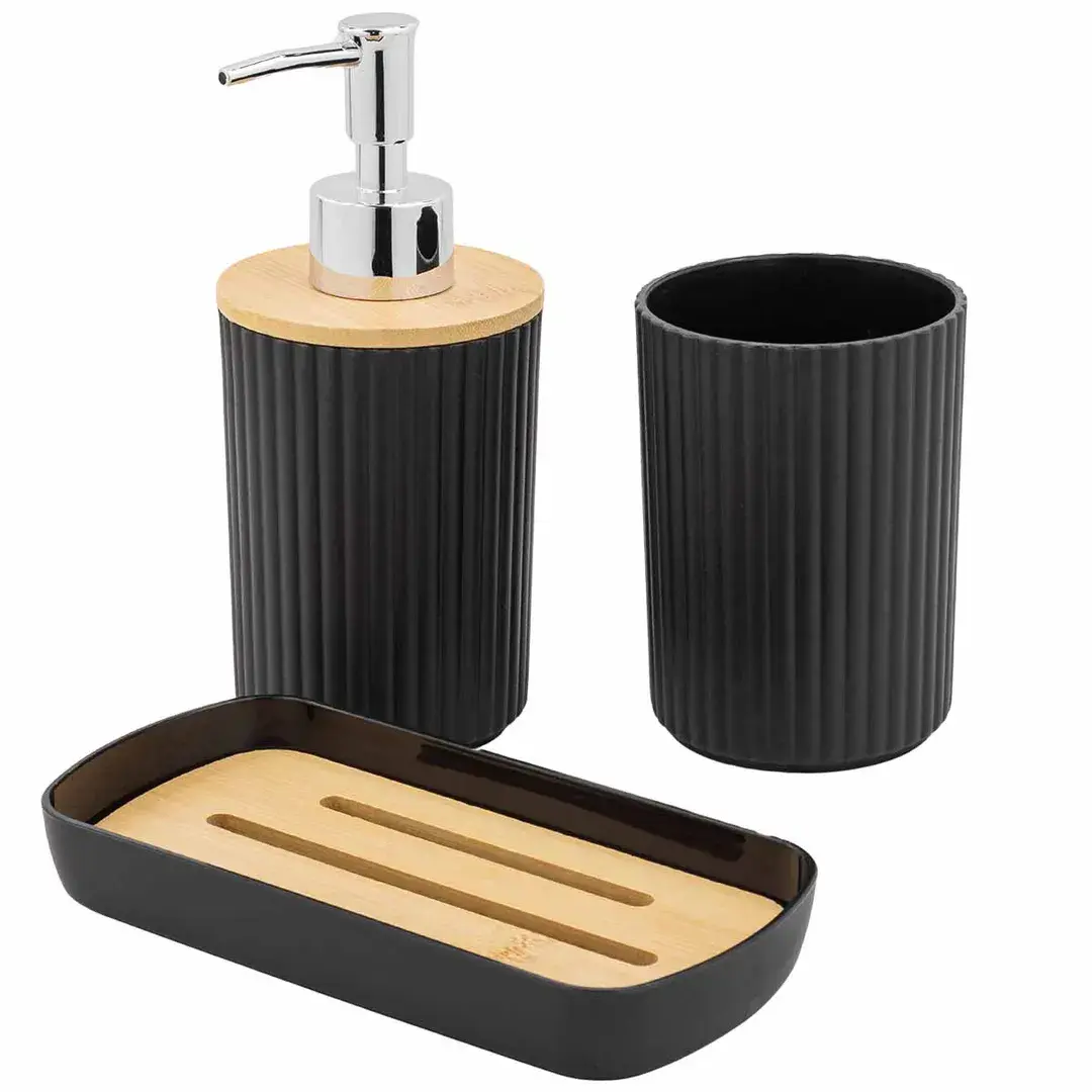 Набор для ванной комнаты 3пр. (дозатор для мыла, подставка для зубных щеток, лоток для аксессуаров) La and Te beaute LT-BSP-7BK
