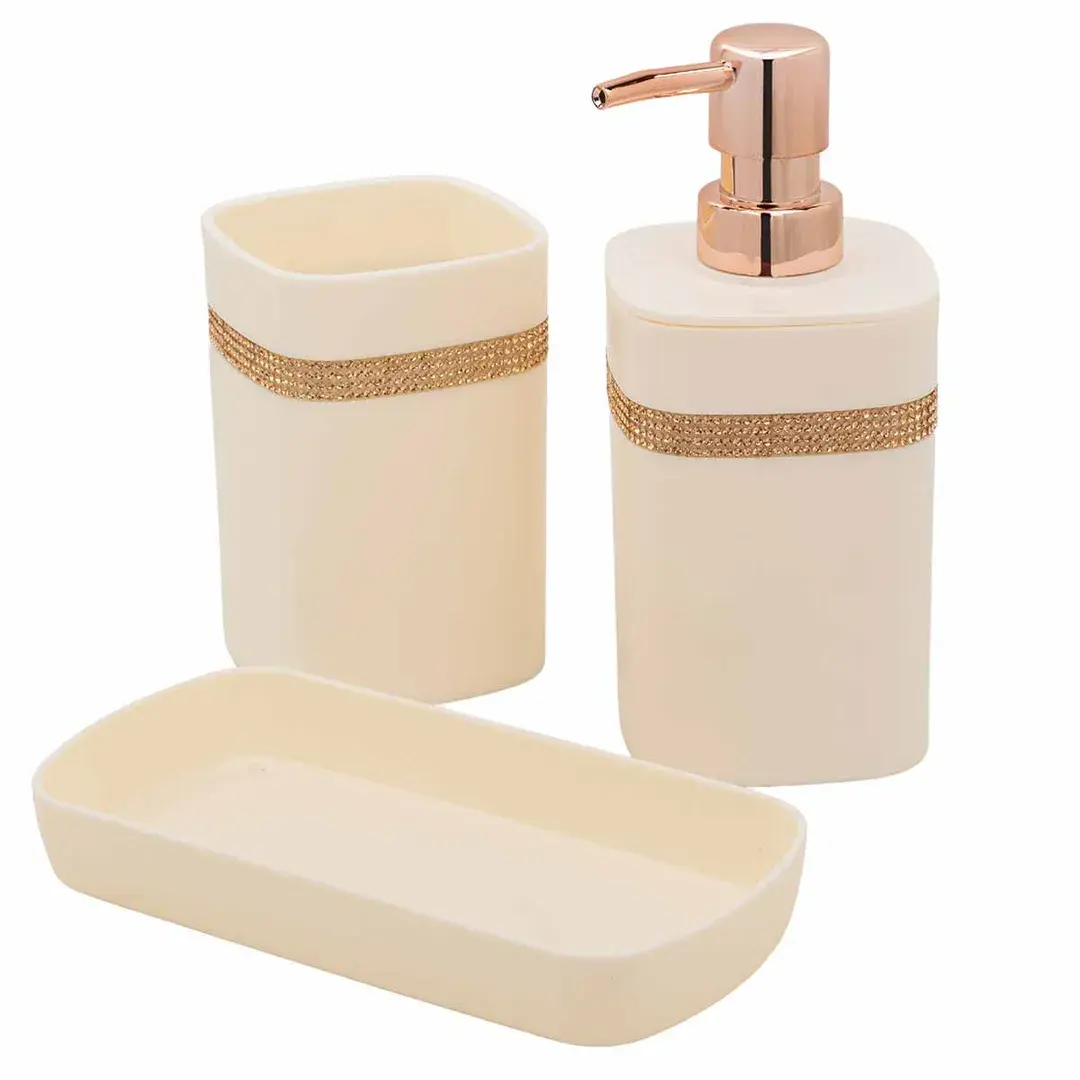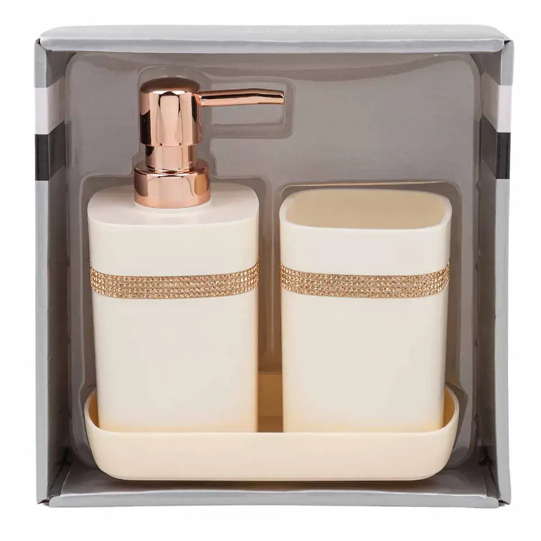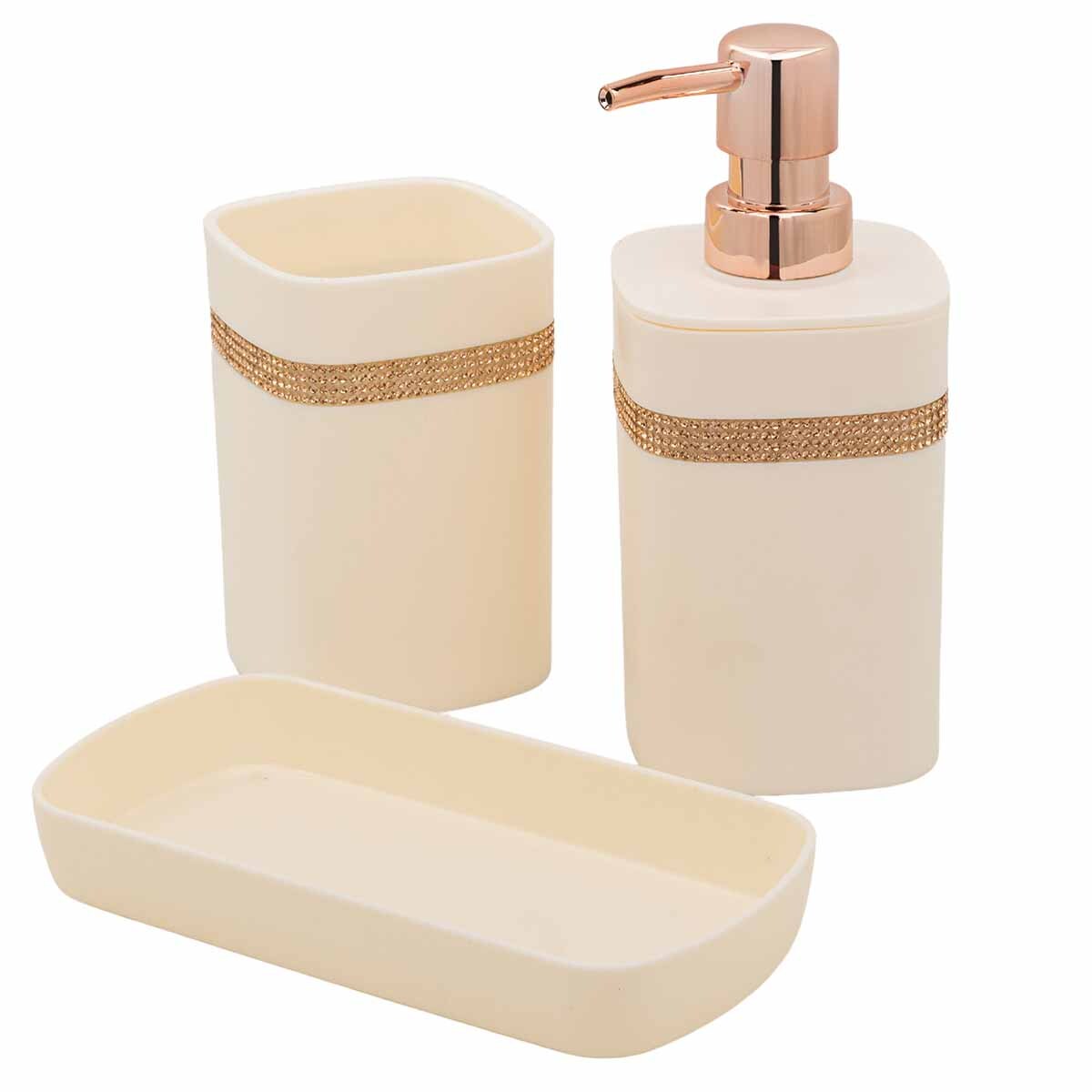 Набор для ванной комнаты 3пр. (дозатор для мыла, подставка для зубных щеток, лоток для аксессуаров) La and Te beaute LT-BSP-11WH