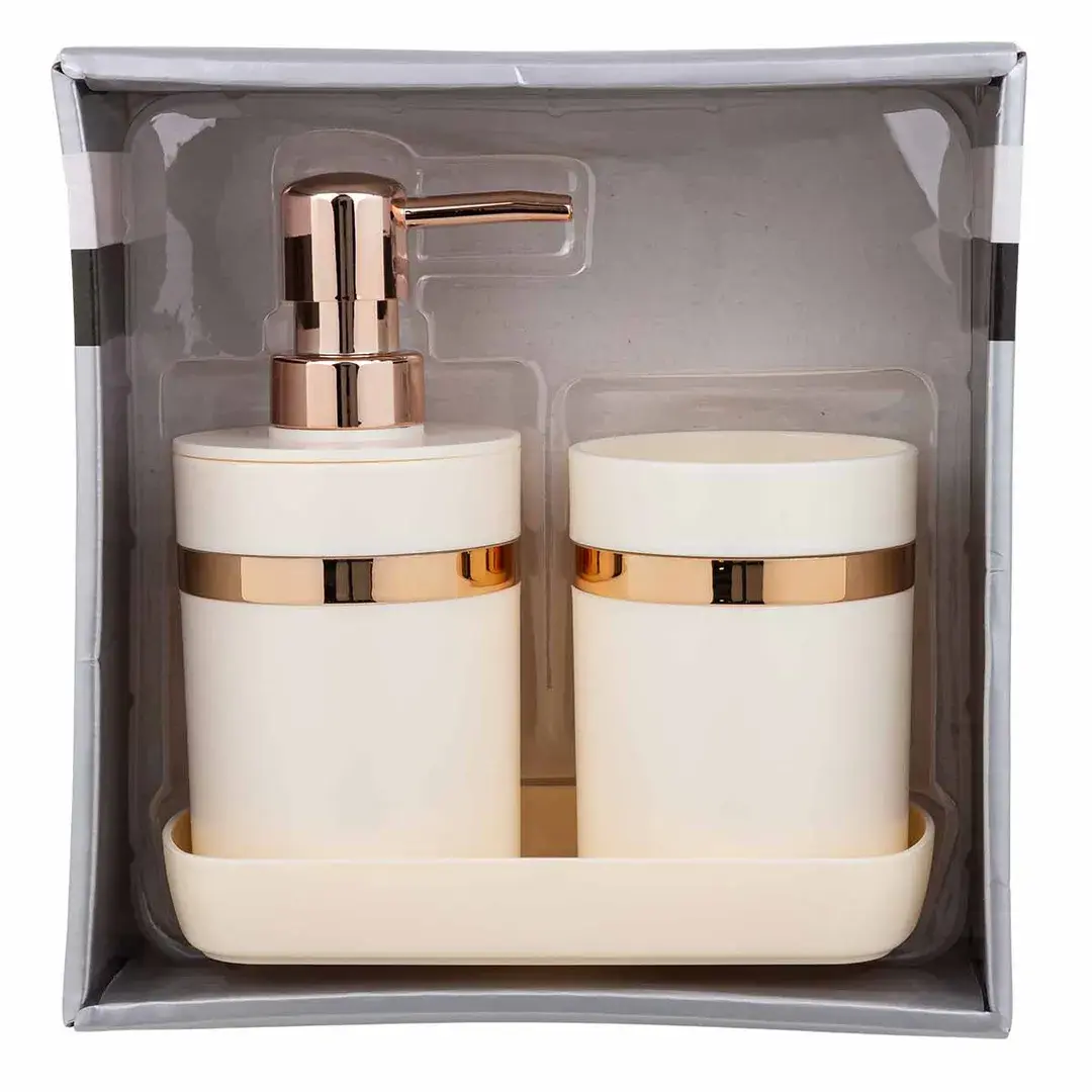 Набор для ванной комнаты 3пр. (дозатор для мыла, подставка для зубных щеток, лоток для аксессуаров) La and Te beaute LT-BSP-12WH