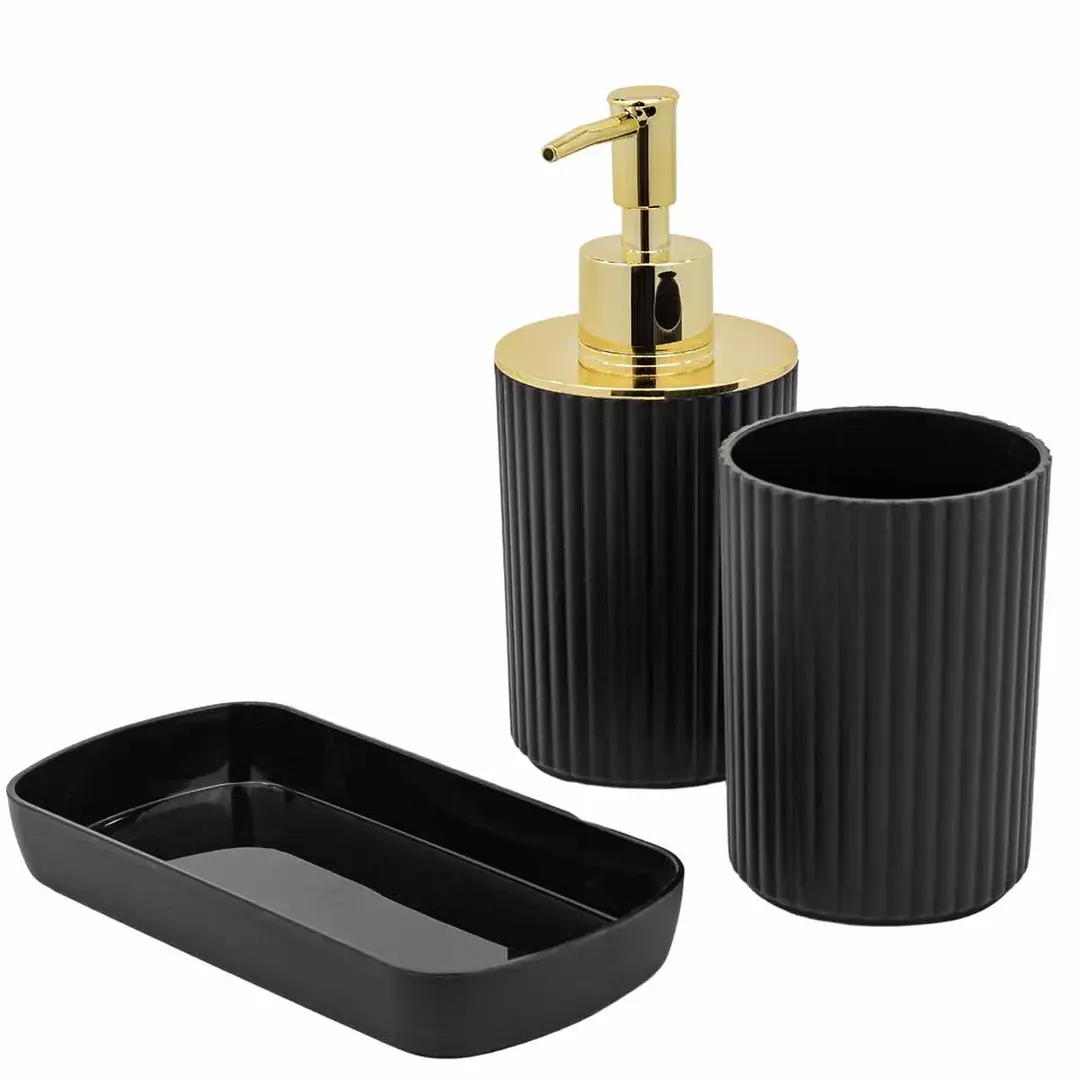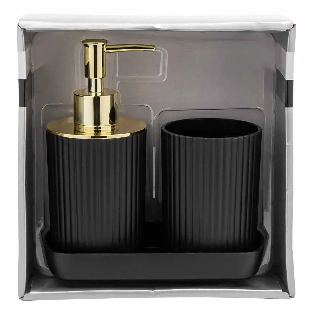 Набор для ванной комнаты 3пр. (дозатор для мыла, подставка для зубных щеток, лоток для аксессуаров) La and Te beaute LT-BSP-8BK
