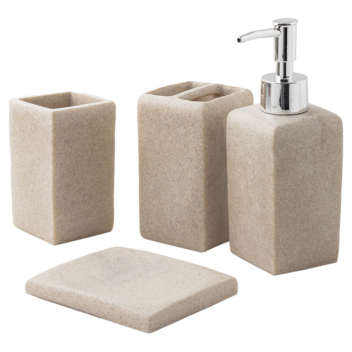 Набор для ванной комнаты 4пр. (мыльница, дозатор для мыла, подставка для зубных щеток, подставка для косметических аксессуаров) La and Te beaute LT-BS-4