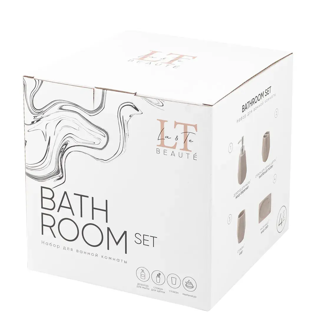 Набор для ванной комнаты 4пр. (мыльница, дозатор для мыла, подставка для зубных щеток, подставка для косметических аксессуаров) La and Te beaute LT-BS-3