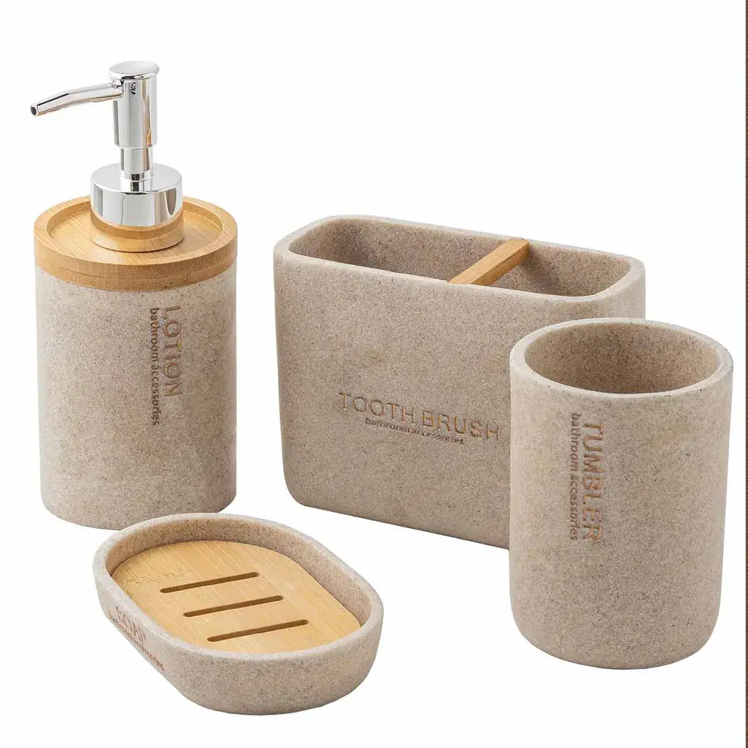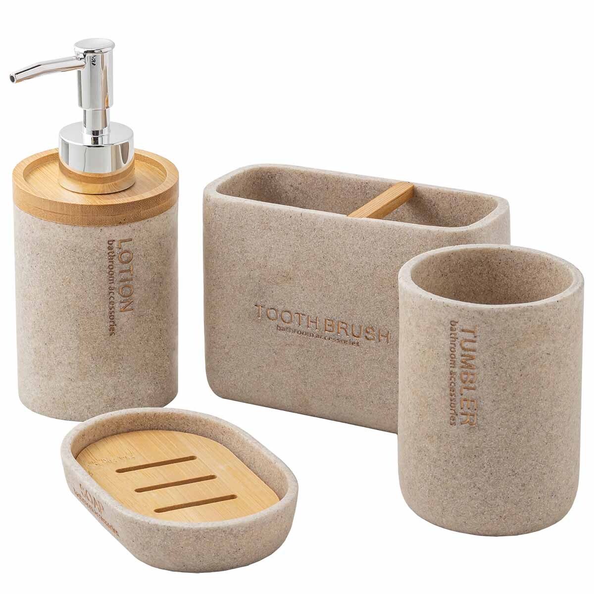Набор для ванной комнаты 4пр. (мыльница, дозатор для мыла, подставка для зубных щеток, подставка для косметических аксессуаров) La and Te beaute LT-BS-18