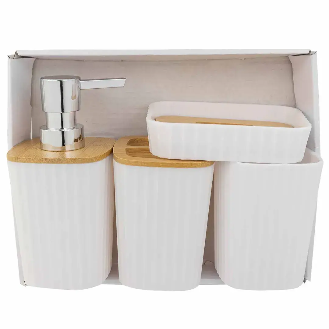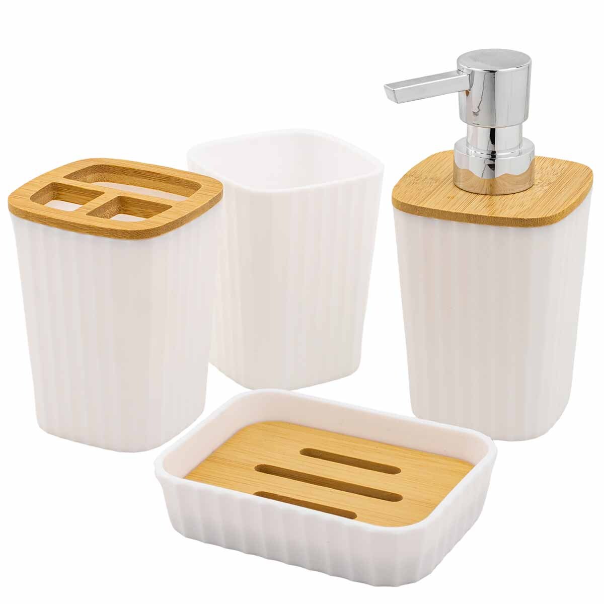Набор для ванной комнаты 4пр. (мыльница, дозатор для мыла, подставка для зубных щеток, подставка для косметических аксессуаров) La and Te beaute LT-BSP-6WH