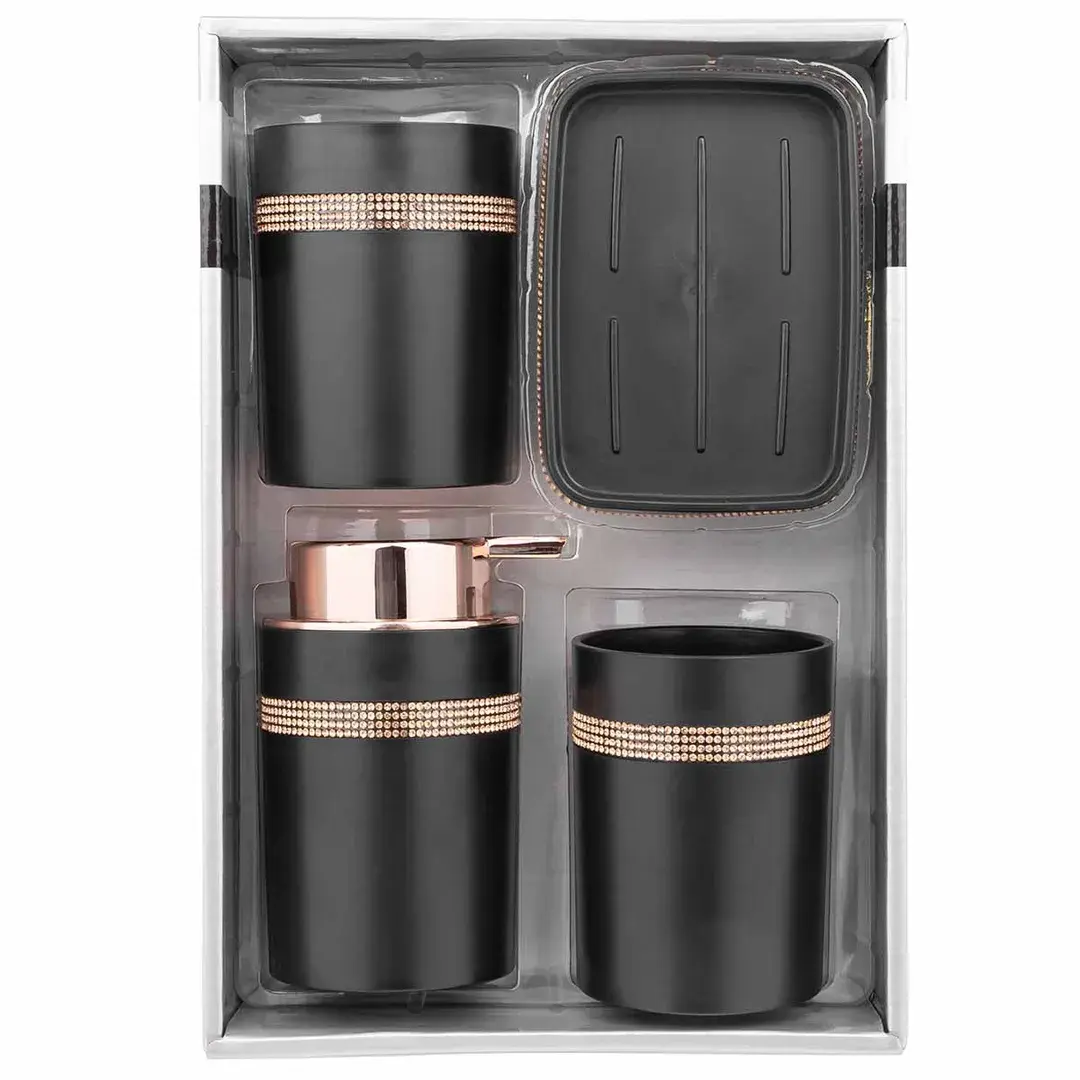 Набор для ванной комнаты 4пр. (мыльница, дозатор для мыла, подставка для зубных щеток, подставка для косметических аксессуаров) La and Te beaute LT-BSP-4BK