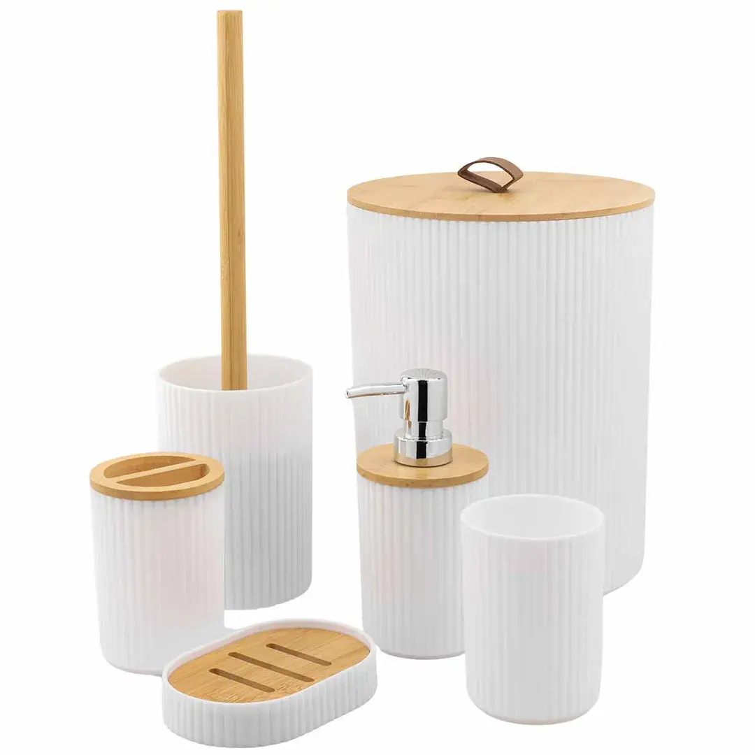 Набор для ванной комнаты 7пр. (мыльница,дозатор для мыла,подставка для зубных щеток,для косметических аксессуаров,ершик,подставка для ершика,корзина ) La and Te beaute LT-BSPB-2WH