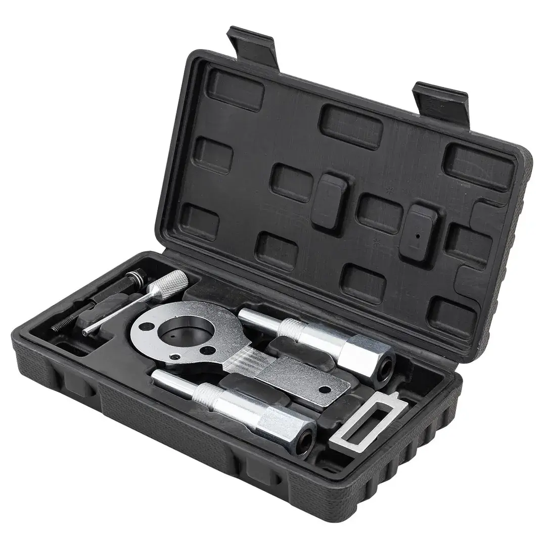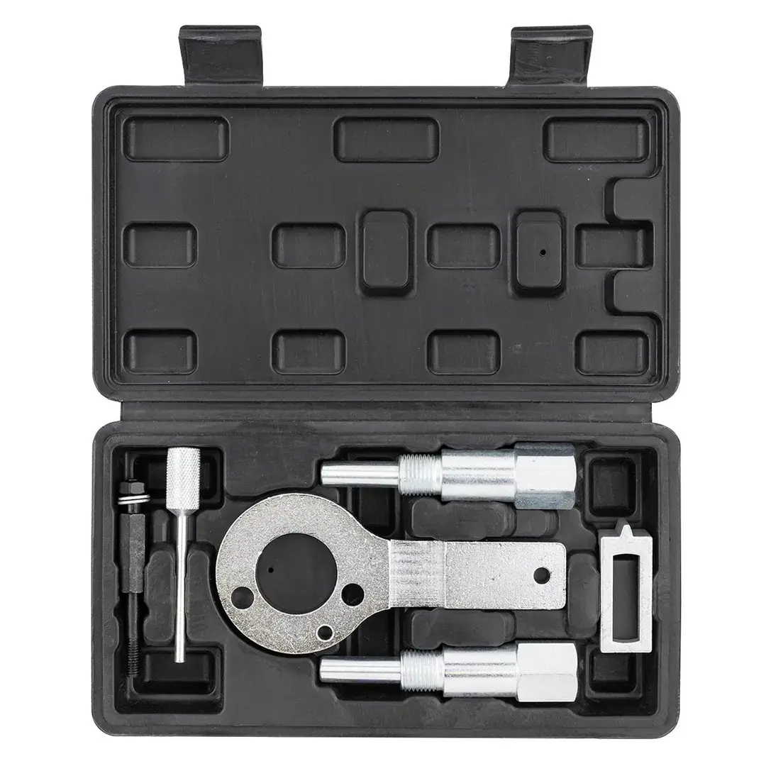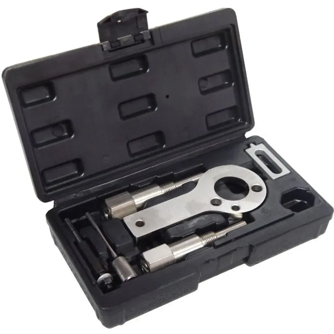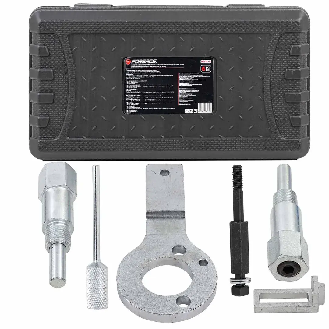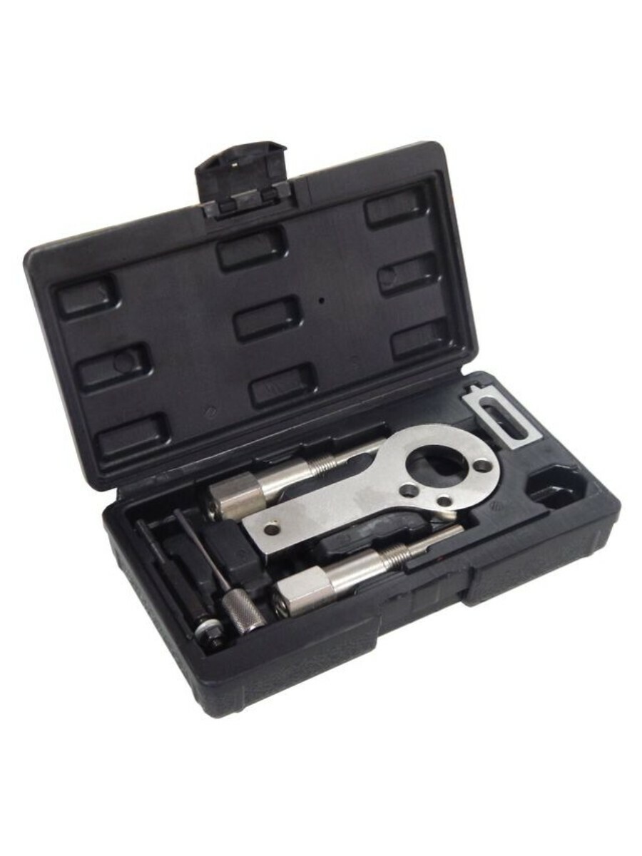 Набор приспособлений и инструментов предназначен для установки фаз ГРМ дизельных двигателей последних моделей OPEL с объемом 1.9 CDTi. Комплект инструментов можно использовать также на двигателях автомобилей SAAB с моторами данной модификации. Комплектация: Удерживающее устройство для коленчатого вала Opel – 1 шт. Фиксатор распределительных валов для Opel – 2 шт. Фиксатор натяжителя – 1 шт. (OEM: EN-46788/32 025 009, EN-46789, 32 025 008, KM-6349/87 92 335) Модели Vauxhall/Opel: Vauxhall/Opel Astra - H 1.9 CDTi (2004-2011) Vauxhall/Opel Vectra - C 1.9 CDTi (2004-08) Vauxhall/Opel Signum 1.9 CDTi (2004-2008) Vauxhall/Opel Zafira - B 1.9 CDTi (2005-2012) Vauxhall/Opel Insignia 2.0 CDTi (2008-2012) Двигатели Vauxhall/Opel: 1.9 CDTi engines: Z19DT - Z19DTH - Z19DTJ - Z19DTL 2.0 CDTi engines: A20DT/LBS - A20DT/LBX - A20DT/LBY - A20DT/LCD Модели Saab: Saab 9-3 1.9 TiD (2004-2010) Saab 9-5 1.9 TiD (2005-2010) Двигатели Saab: Z19DT - Z19DTH Применение ALFA ROMEO, FIAT, LANCIA: Alfa Romeo: 1.9 8/16V, 2.4 10/20V JTD - 145 1.9 JTD (1998-2001), 146 1.9 JTD (1998-2001), 147 1.9 JTD (2001-2010), 156 1.9 JTD 2.4 JTD (1997-2008), 159 1.9 JTDM 2.4 JTDM (2005-2011), 166 2.4 JTD (1998-2008), GT 1.9 JTDM (2003-2010), Brera 2.4 JTDM (2005-2011),Cross wagon 1.9 JTD (2004-2008), Spider 2.4 JTDM (2006-2011) Fiat: 1.6 16V, 1.9, 8/16V, 2.0 16V, 2.4 10/20V JTD, Multijet - Brava 1.9 JTD (1998-2002), Bravo I 1.9 JTD (1998-2002), Bravo II 1.6 Multijet (2007-2009), Croma 1.9, 2.4 Multijet (2005-2008), Doblo/Cargo 1.6, 1.9 Mulijet, 1.9 JTD (2002- ), Grande Punto1.9, 2.0 Multijet (2005- ), Idea 1.6 Multijet, 1.9 JTD (2004-2007), Marea 1.9, 2.4 JTD (1999-2003), Marea Weekend 1.9, 2.4 JTD (1999-2003), Multipla 1.9 JTD (1999-2004), Punto 1.9 JTD (1999-2006), Stilo 1.9 JTD, 1.9 Multijet (2001-2006),Stilo Multi Wagon 1.9 Multijet,1.9 JTD (2003-2008), Palio Weekend 1.9 JTD (2001- ) Lancia: 1.6 Multijet,1.9 8V, 2.4 10V/20V JTD - Kappa 2.4 JTD 10V (1998-2002), Lybra 1.9 JTD 8V, 2.4 JTD 10V/20V (1999-2007), Musa 1.6 Multijet (2004-2012), Thesis 2.4 JTD 10V/20V (2002-2008) Двигатели ALFA ROMEO, FIAT, LANCIA: 1.6 JTD 16V Multijet: 198A2.000 - 198A3.000 - 198A6.000 - 350A2.000 1.9 JTD 8V Multijet: 323.02 - 371.01 - 182B4.000 - 182B9.000 - 186A6.000 - 186A8.000 - 186A9.000 - 188A2.000 - 188A7.000 - 188B2.000 - 192A1.000 - 192A3.000 - 192A8.000 - 192A9.000 - 939A7.000 - 192B4.000 - 192B5.000 - 199A5.000 - 223A7.000 - 937A2.000 - 937A3.000 - 939A1.000 - 939A5.000 1.9 JTD 16V: 192A5.000 - 192B1.000 - 937A4.000 - 937A5.000 - 939A2.000 - 939A8.000 2.0 JTD 16V: 198A5.000 2.4 JTD 10V: 325.01 - 342.02 - 362.02 - 185A6.000 - 838A8.000 - 839A5.000 - 839A6.000 - 841C.000 2.4 JTD 20V: 841C.000 - 841D.000 - 841G000 - 841H.000 - 841M.000 - 939A3.000 - 939A9.000
