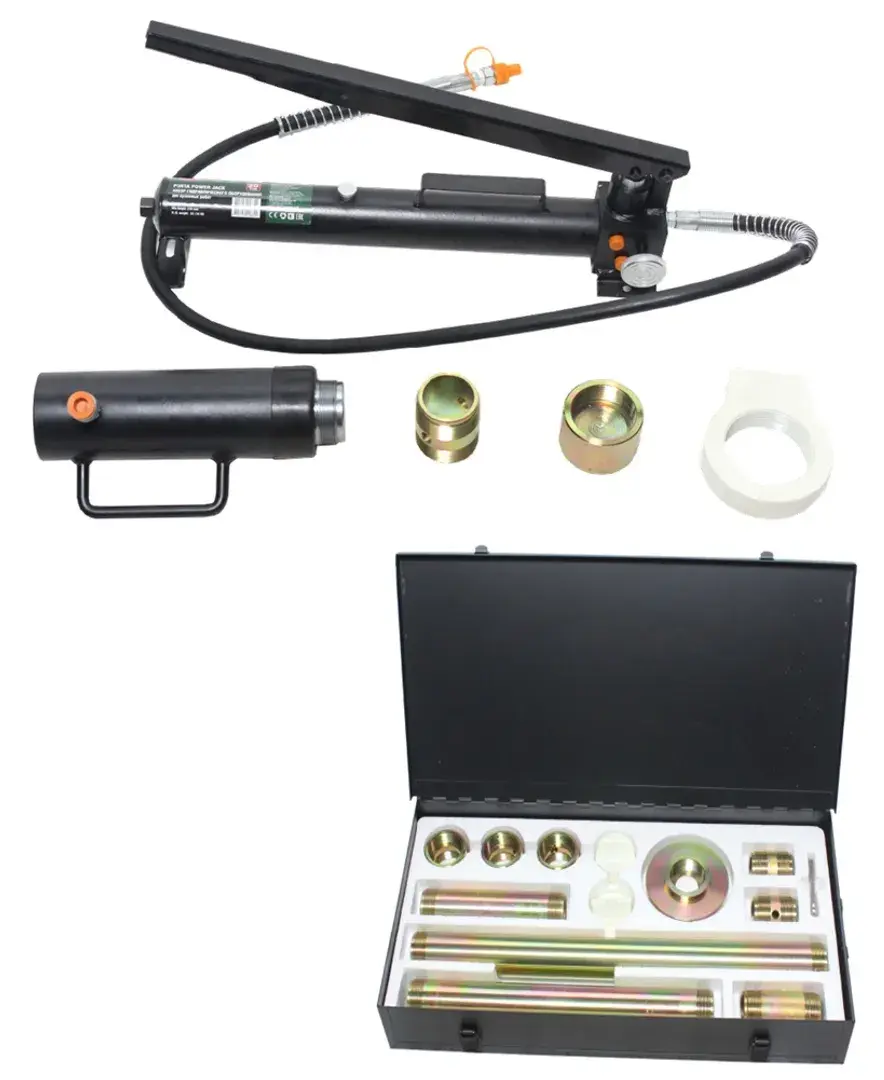 Набор гидравлического оборудования для кузовных работ, 20т,(насос, цилиндр + комплект удлинителей и надставок), в двух металлических кейсах