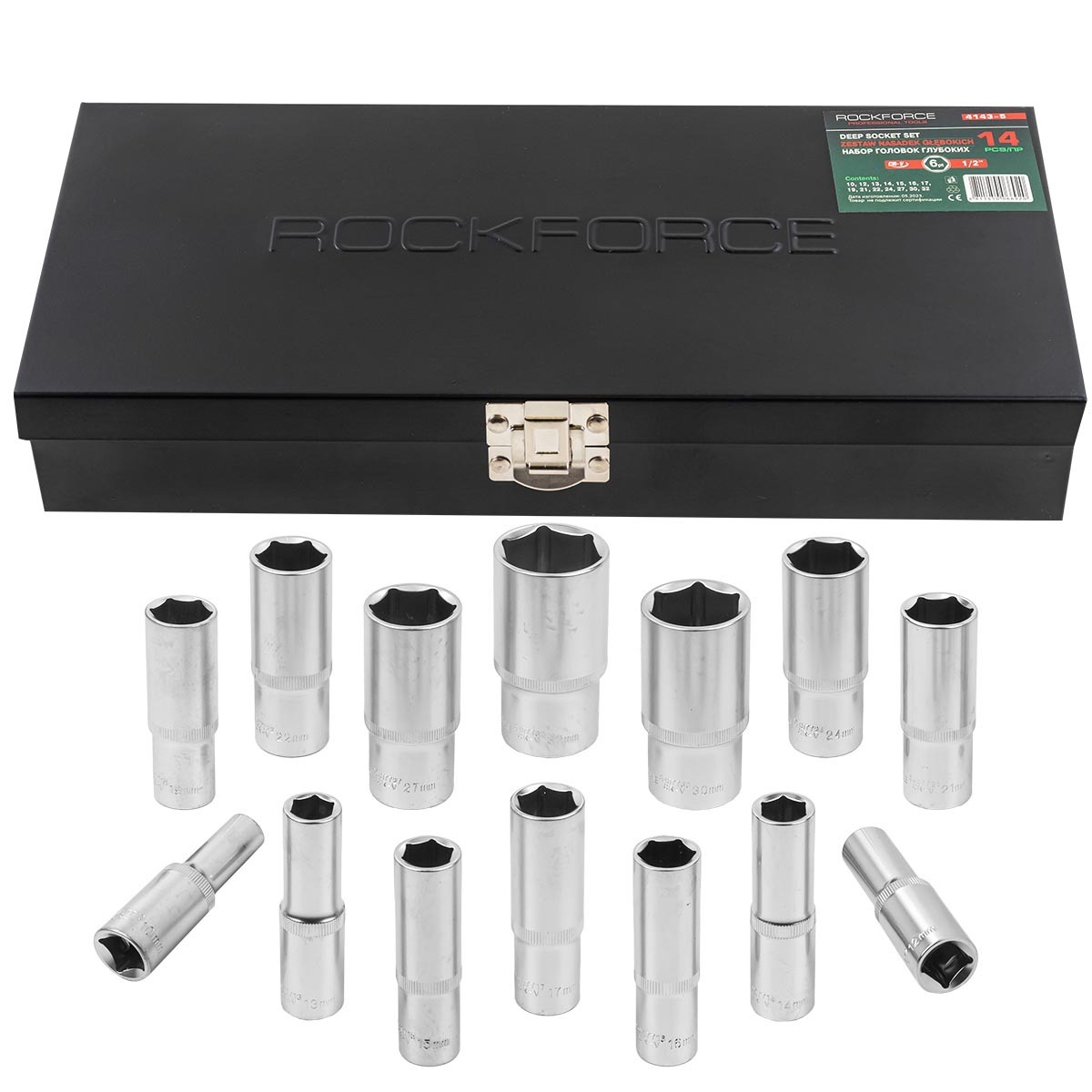 Набор головок глубоких 14пр. 1/2''в мет.кейсе RockForce RF-4143-5