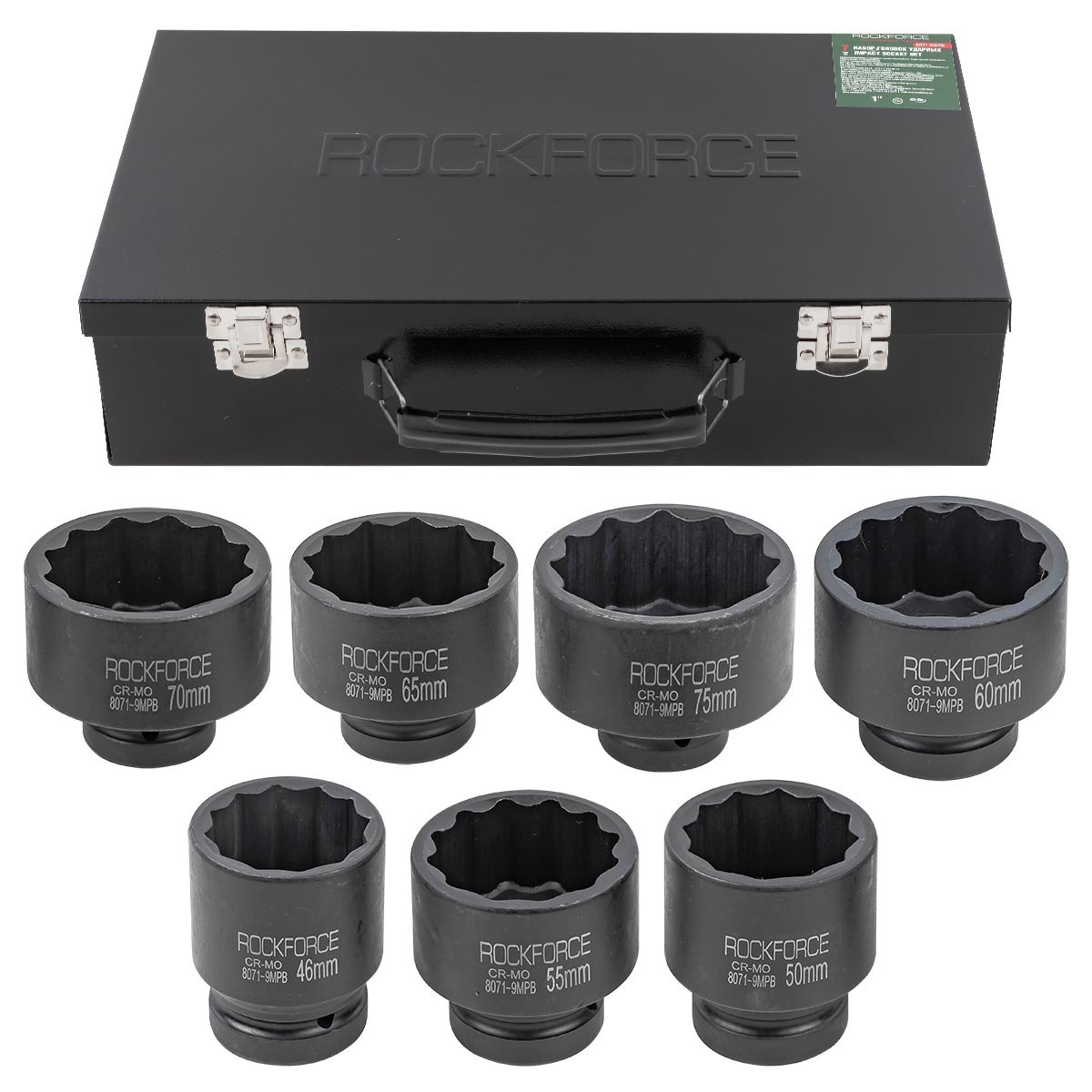 Набор головок ударных 1''7пр. (12гр.) (46,50,55,60,65,70,75мм) RockForce##Rock FORCE RF-8071-9MPB