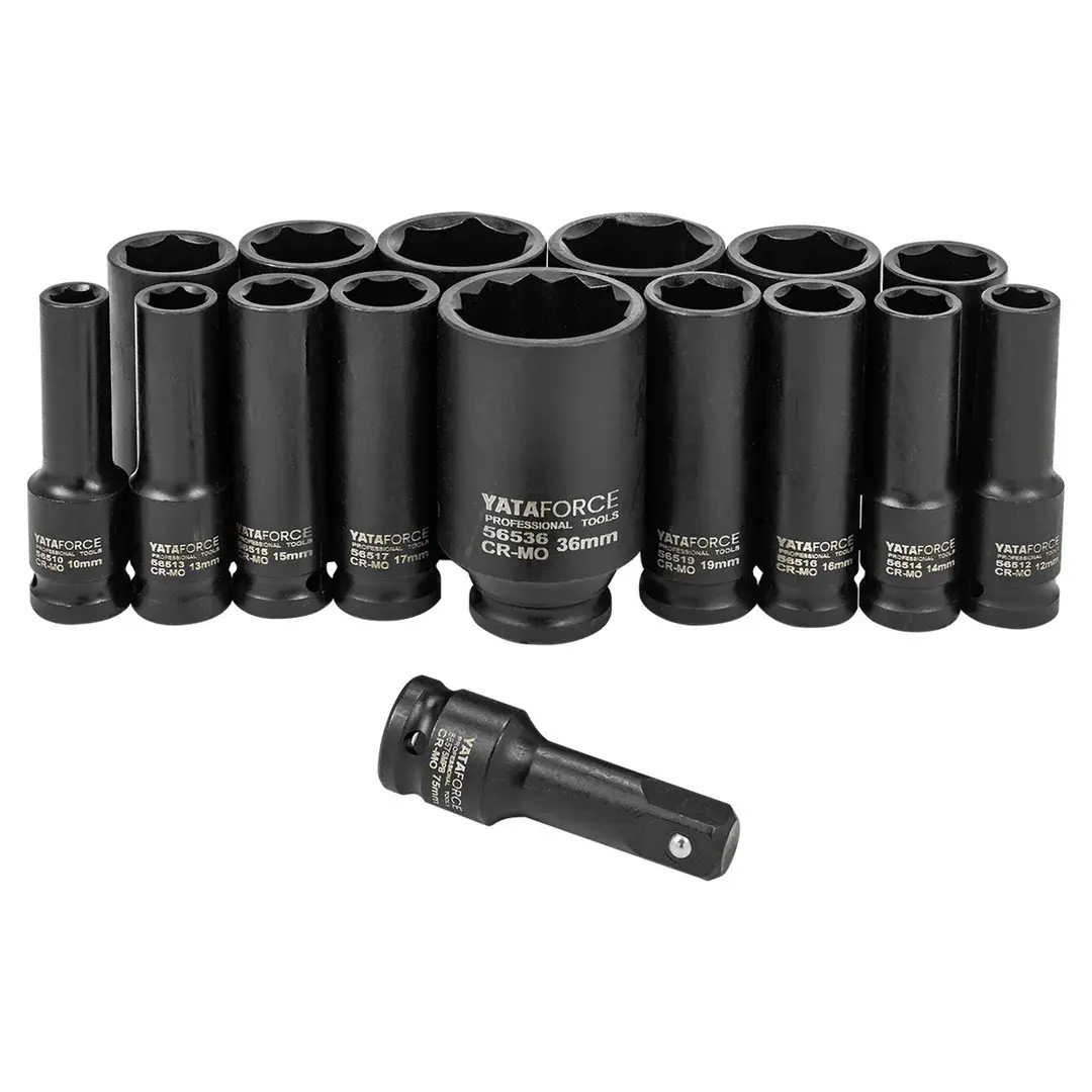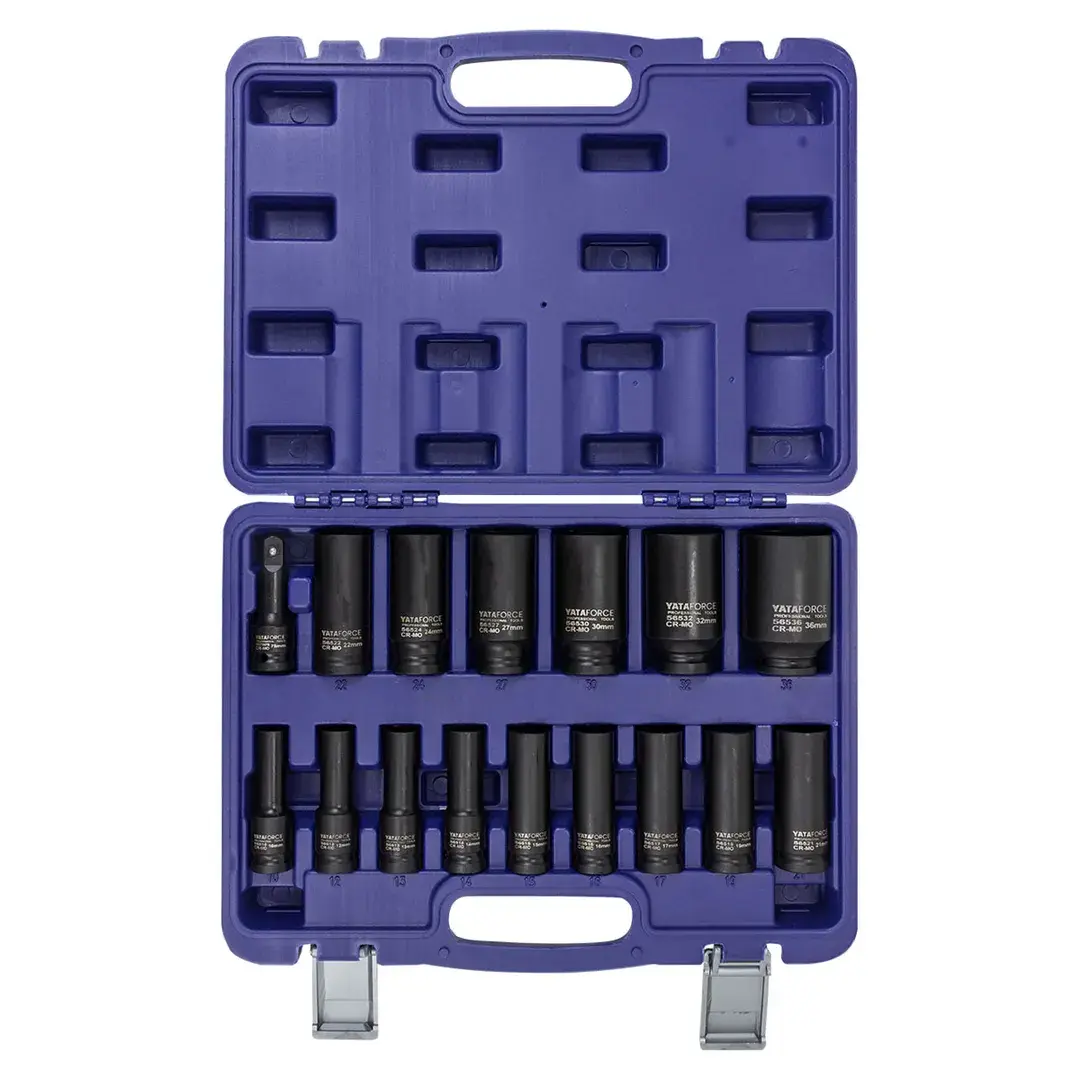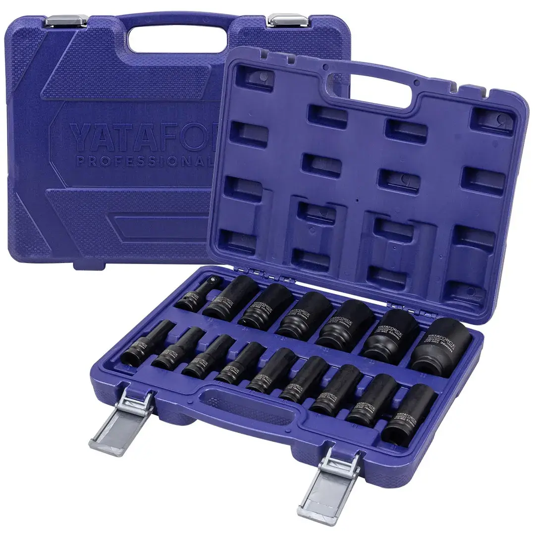 Набор головок ударных глубоких 16пр.1/2''(6-гр.)(10,12-17,19,21,22,24,27,30,32мм(36мм-12гр)+удлинитель 75мм),в кейсе YATAFORCE YF-4177-5MPB
