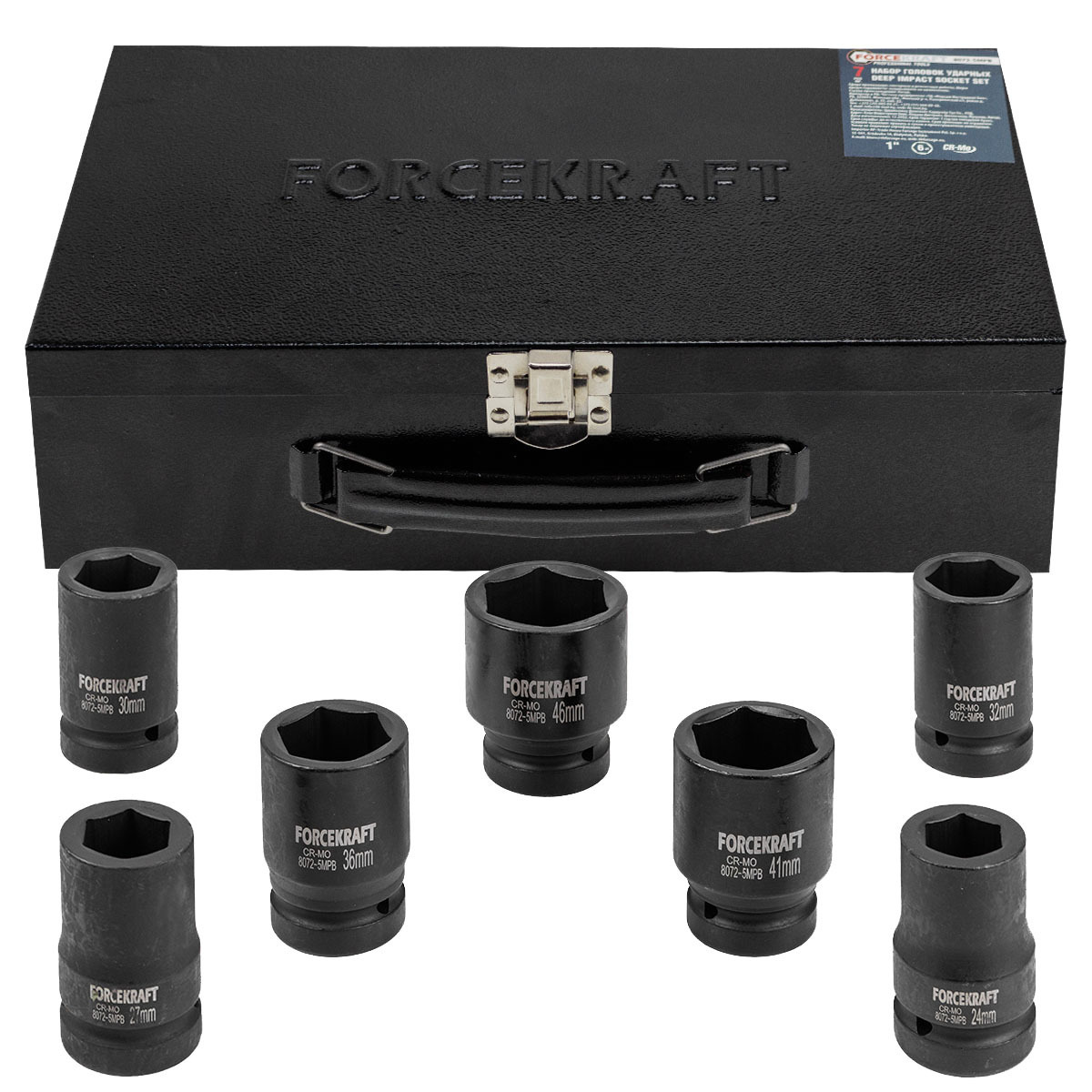 Набор головок ударных глубоких 1''7пр. (6гр.) (24,27,30,32,36,41,46мм) FORCEKRAFT FK-8072-5MPB