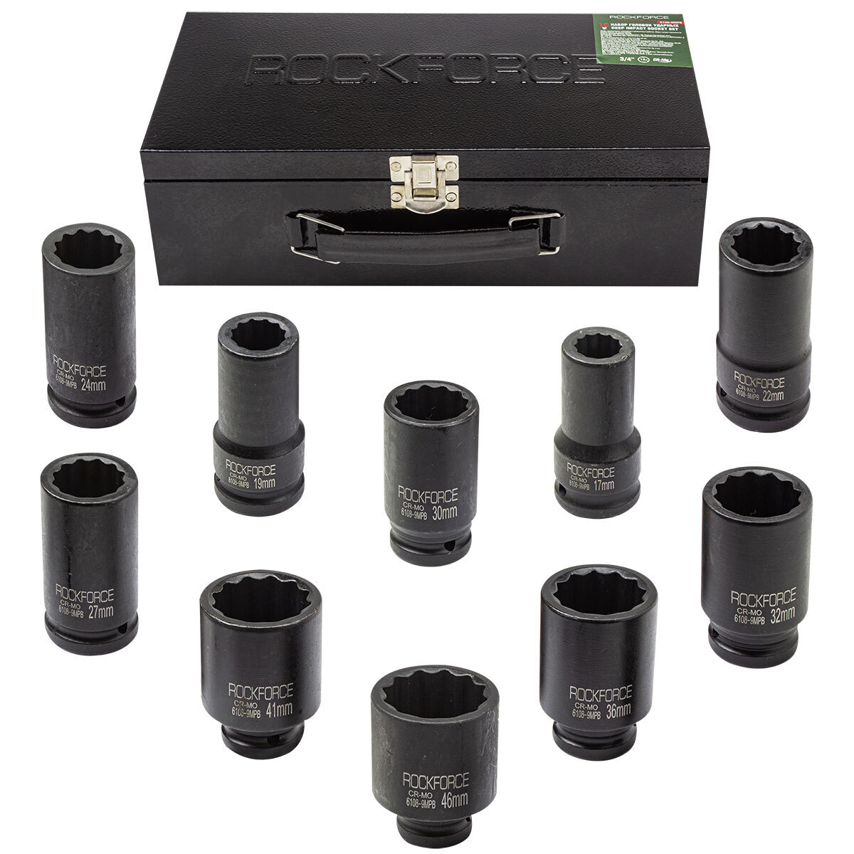 Набор головок ударных глубоких 3/4''10пр. (12гр.) (17,19,22,24,27,30,32,36,41,46мм) RockForce##Rock FORCE RF-6108-9MPB