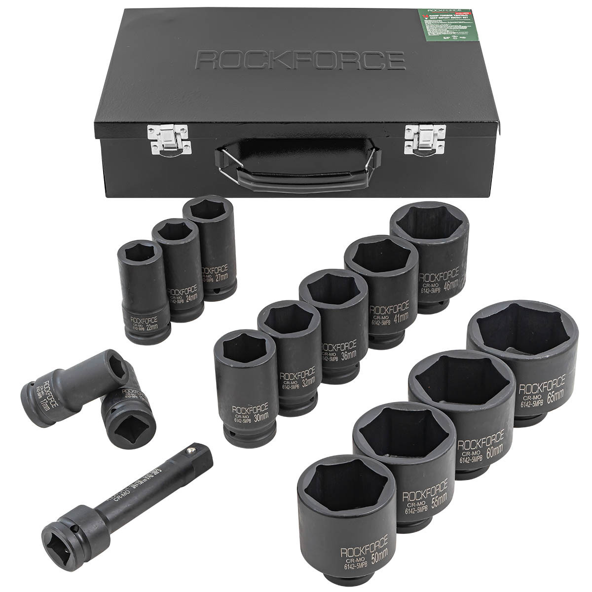 Набор головок ударных глубоких 3/4''14пр.(6гр.)(17,19,22,24,27,30,32,36,41,46,50,55,60,65мм)в метал. кейсе RockForce##Rock FORCE RF-6142-5MPB