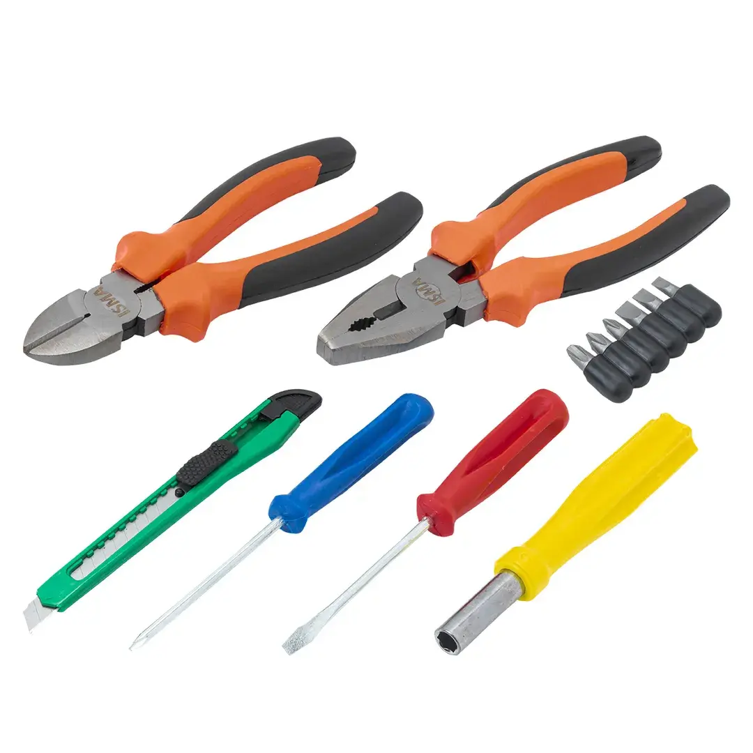 Набор инструментов бренда ISMA - это универсальный комплект, который включает в себя все необходимые инструменты для решения бытовых задач. Комплектация: биты:PH1,2,3 SL 4,5,6мм; отвертка-битодержатель 120мм; отвертки: PH0х65мм, SL4х65мм, нож канцелярский, плоскогубцы 165мм, бокорезы 150мм.