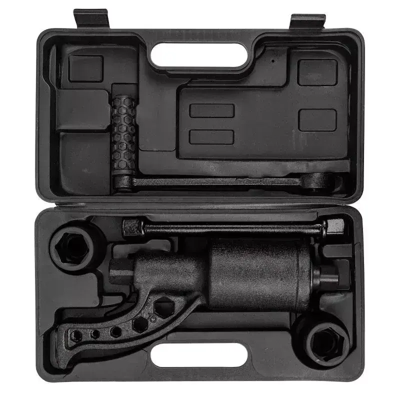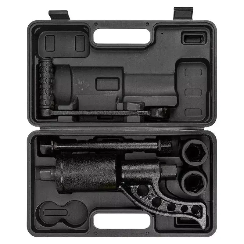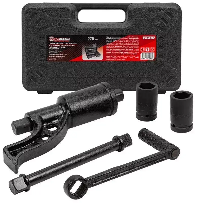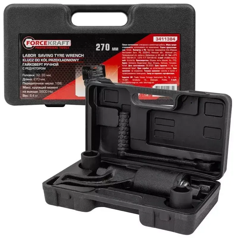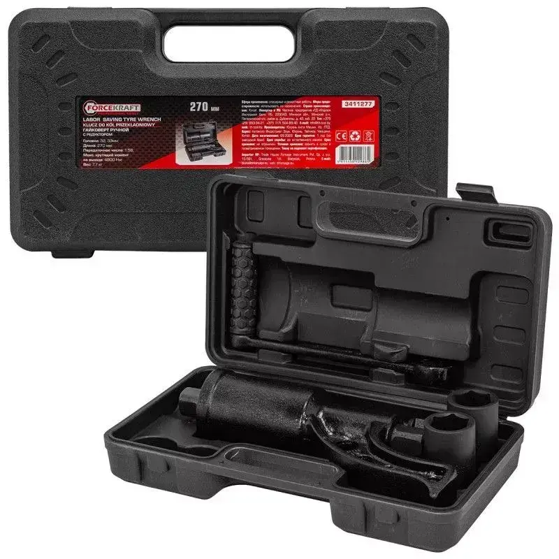 Гайковерт ручной с редуктором в кейсе предназначен для откручивания различных резьбовых соединений на грузовых автомобилях, строительных сооружениях и др. При помощи "мясорубки"можно выполнять работу не прилагая больших усилий. Присоединительный квадрат 1". Передаточное число 1:1/1:3/1:58. Длина 330 мм. Комплектуется головками: 32, 33 мм. Максимальный момент силы 5800 Нм. В пластиковом кейсе.