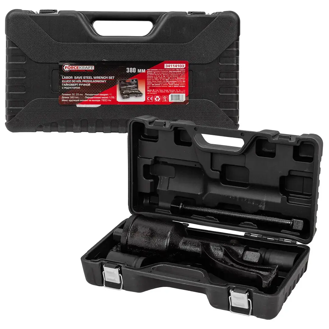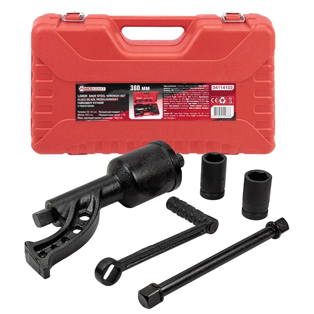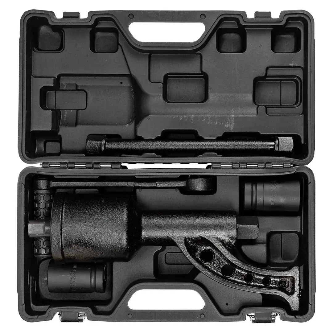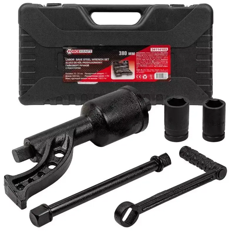 Гайковерт ручной с редуктором предназначен для откручивания различных резьбовых соединений на грузовых автомобилях, строительных сооружениях и др. При помощи "мясорубки"можно выполнять работу не прилагая больших усилий. Технические характеристики: Длина : 330мм; Максимальный крутящий момент 7800 Н/м. Посадочный квадрат 1". Размеры головок 32 и 33 мм в комплекте. Рабочий профиль 6 граней. Для удобства хранения и транспортировки поставляется в прочном пластиковом кейсе.