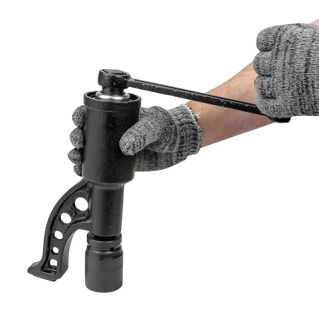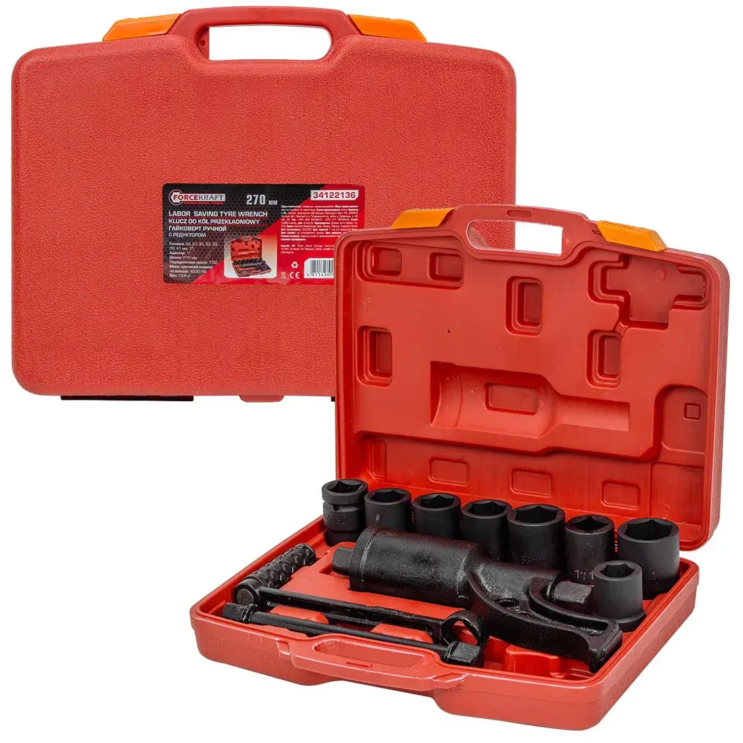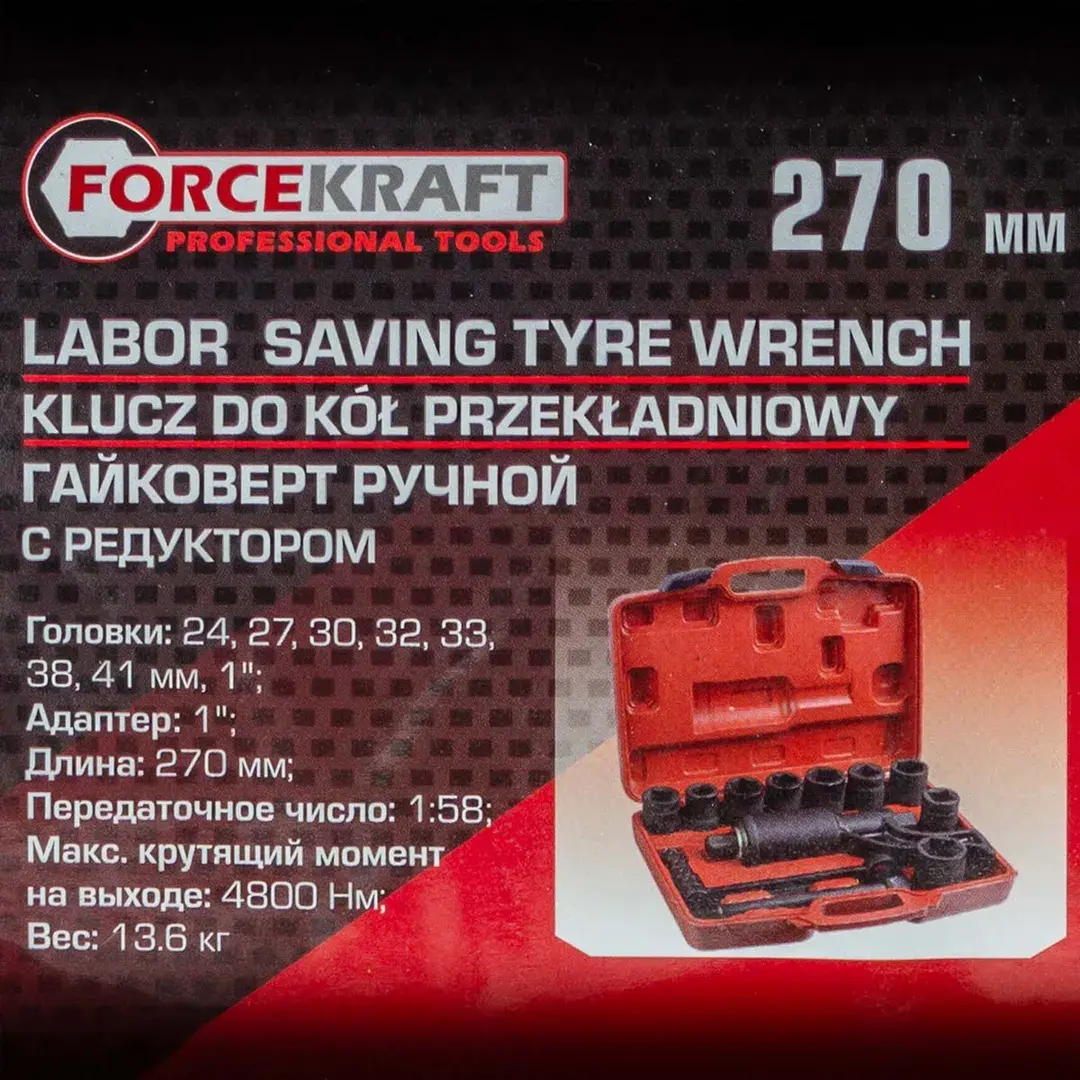 Гайковерт ручной с редуктором в кейсе предназначен для откручивания различных резьбовых соединений на грузовых автомобилях, строительных сооружениях и др. При помощи "мясорубки"можно выполнять работу не прилагая больших усилий. Длина : 270мм; Максимальный крутящий момент 4800 Н/м. Передаточное число 1:58. Посадочный квадрат 1". Размеры головок 24, 27, 30, 32, 33, 38, 41 мм и адаптор 1"в комплекте. Рабочий профиль 6 граней. Для удобства хранения и транспортировки поставляется в прочном пластиковом кейсе.