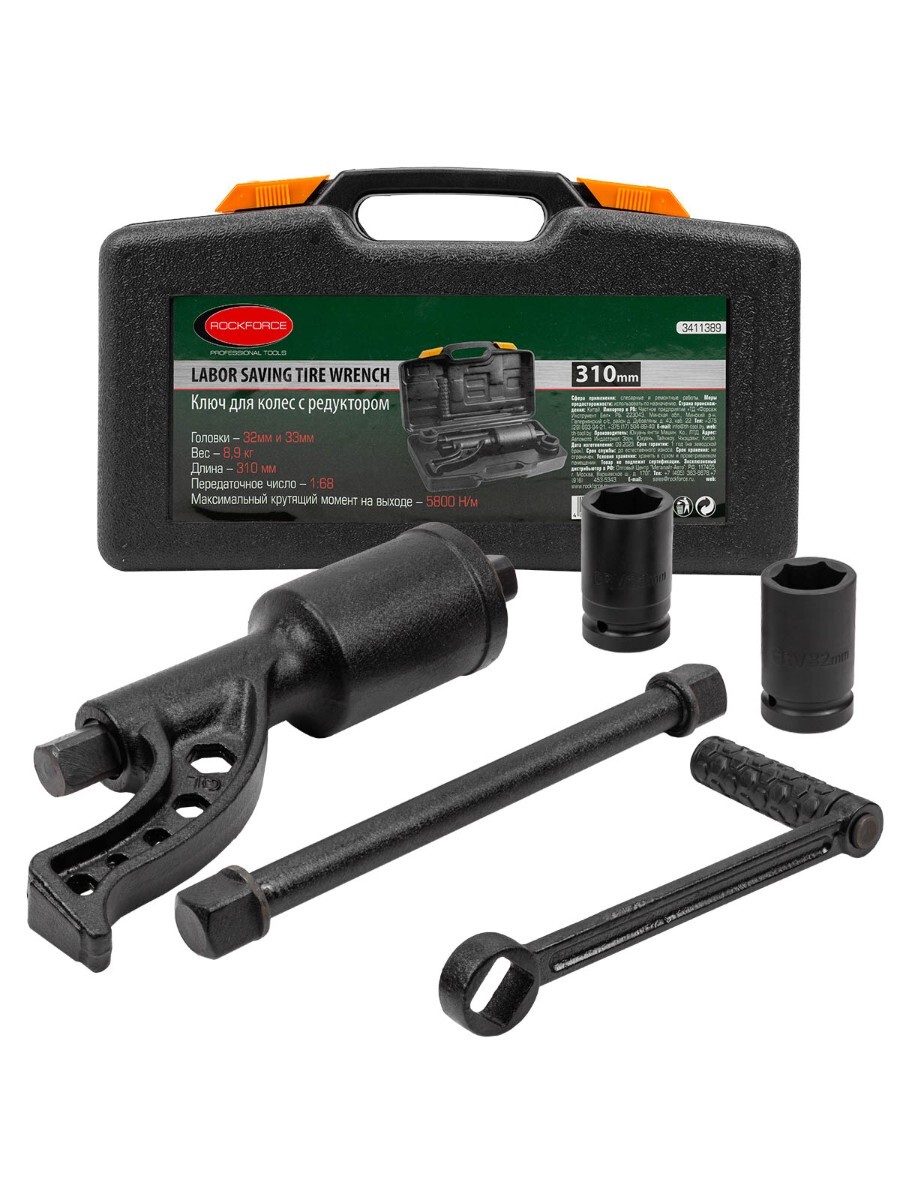 Гайковерт ручной с редуктором в кейсе предназначен для откручивания различных резьбовых соединений на грузовых автомобилях, строительных сооружениях и др. При помощи "мясорубки"можно выполнять работу не прилагая больших усилий. Присоединительный квадрат 1". Передаточное число 1:68. Длина 310 мм. Комплектуется головками: 32, 33 мм. Максимальный момент силы 5800 Нм. В пластиковом кейсе.