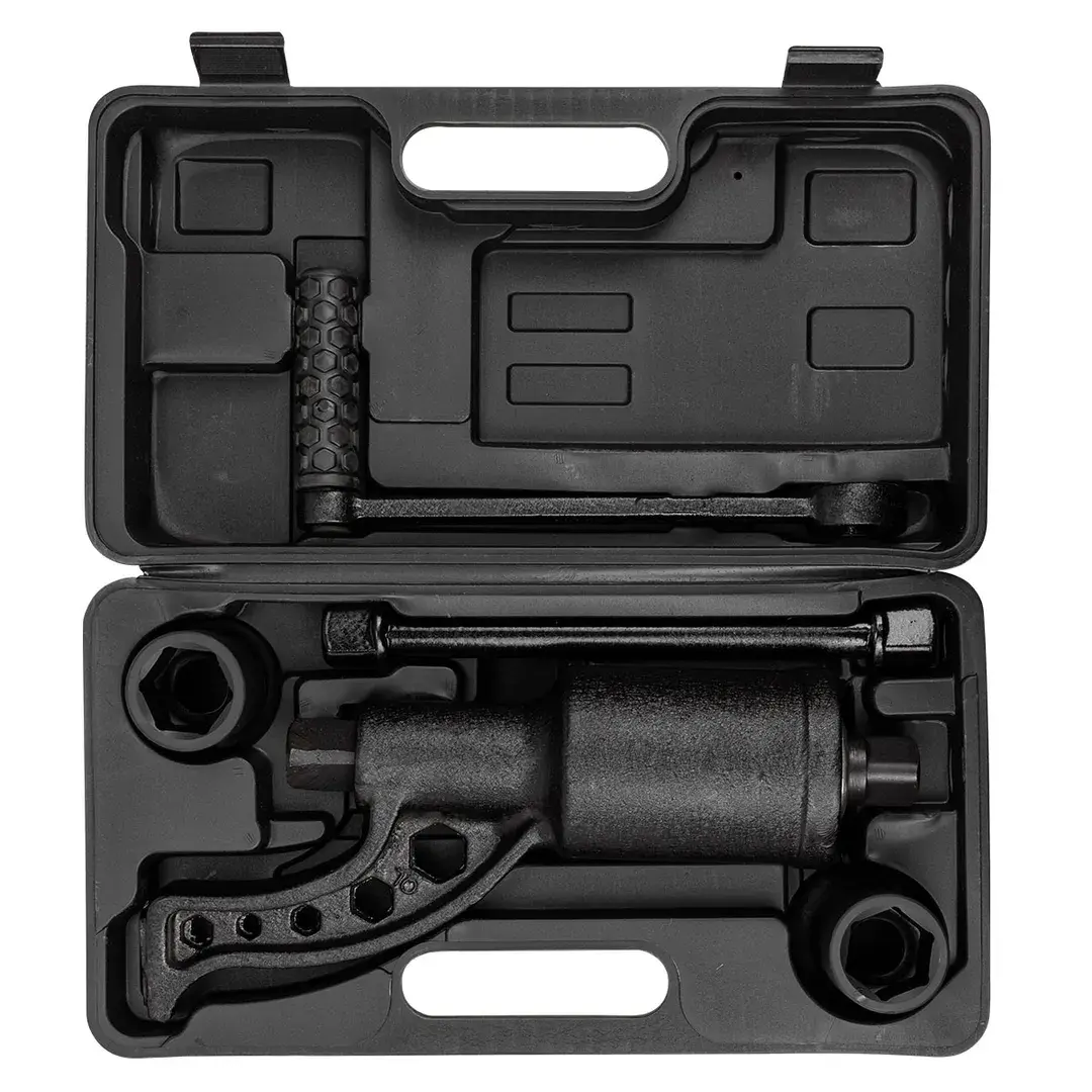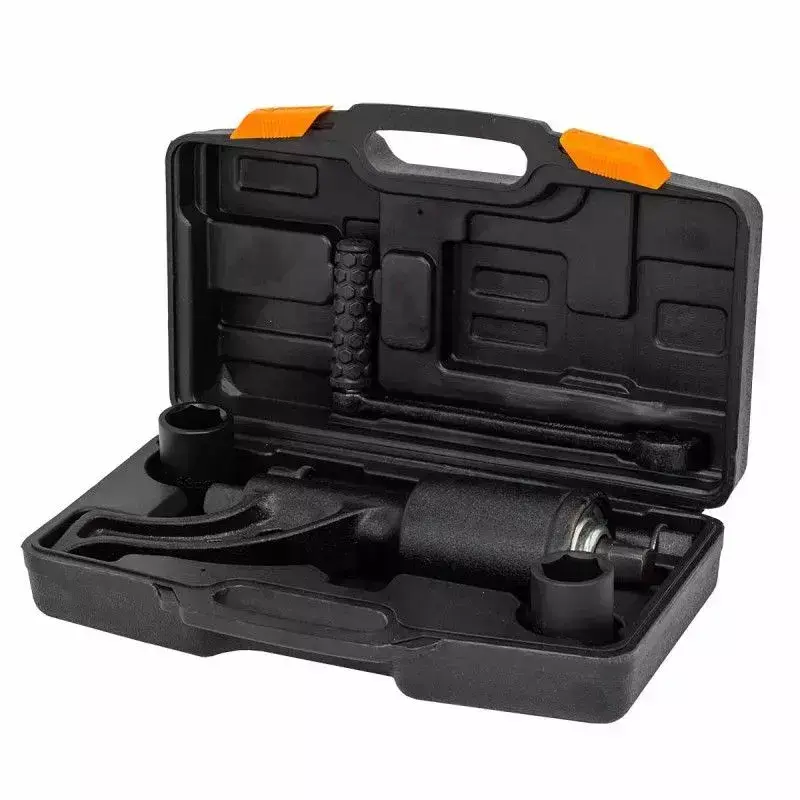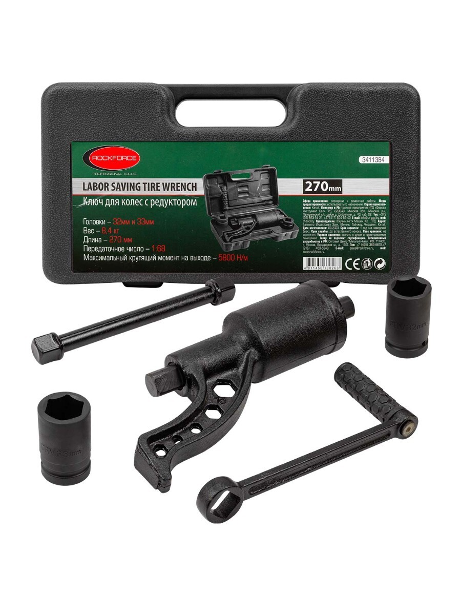 Гайковерт ручной с редуктором в кейсе предназначен для откручивания различных резьбовых соединений на грузовых автомобилях, строительных сооружениях и др. При помощи "мясорубки"можно выполнять работу не прилагая больших усилий. Присоединительный квадрат 1". Передаточное число 1:68. Длина 270 мм. Комплектуется головками: 32, 33 мм. Максимальный момент силы 5800 Нм. В пластиковом кейсе.