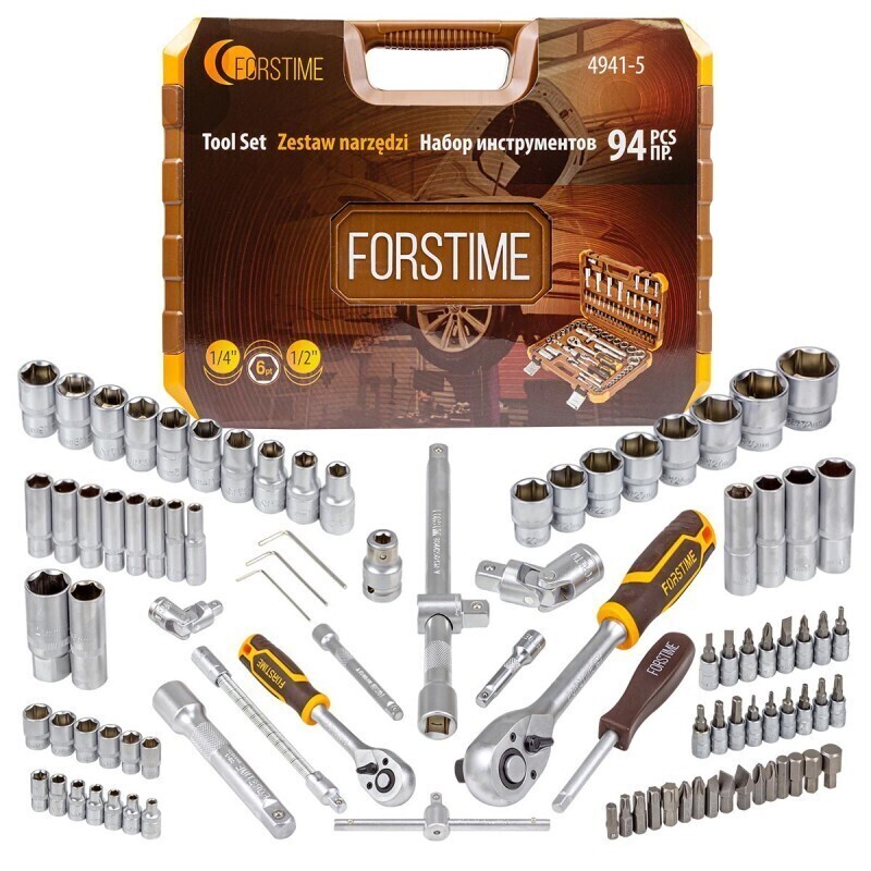 Набор инструментов из 94 предметов в кейсе. Набор инструментов очень удобен для профессионального механика и большинства домашних ремонтных работ. Этот набор инструментов изготовлен из высококачественной хромованадиевой стали. Включает самые необходимые инструменты для любого типа ремонта автомобиля, включая свечи зажигания, тормоза и обслуживание двигателя. Может использоваться для большинства механических операций, включая замену масла и обслуживание автомобилей. Головки и гаечные ключи совместимы с наборами инструментов других производителей. Отличный набор инструментов из 94 предметов, чтобы взять с собой в дорогу. Посадочный квадрат: 1/2"и 1/4". Комплектация: головки 1/4"короткие 25 мм (4, 4.5, 5, 5.5, 6, 7, 8, 9, 10, 11, 12, 13, 14 мм.), головки 1/4"глубокие 50 мм (6, 7, 8, 9, 10, 11, 12, 13 мм.), головки-биты 1/4"HEX 35 мм (3, 4, 5, 6 мм.), головки-биты 1/4"TORX 35 мм (T8, T10, T15, T20, T25, T30), головки-биты 1/4"SL 35 мм (4, 5.5, 6,5), головки-биты 1/4"РН 35 мм (РН.1, РН.2), головки-биты 1/4"PZ 35 мм (PZ.1, PZ.2), трещотка 1/4", рукоятка 1/4"150 мм., вороток Т-образный 1/4"115 мм., удлинители 1/4"50 и 100 мм., гибкий удлинитель 1/4"145 мм., кардан шарнирный 1/4", биты 5/16"HEX 30 мм (8, 10, 12, 14 мм.), биты 5/16"TORX 30 мм (Т40, Т45, Т50, Т55), биты 5/16"SL 30 мм (8, 10, 12), биты 5/16"PH 30 мм (PH.3, PH.4), биты 5/16"PZ 30 мм (PZ.3, PZ.4), головки 1/2"короткие 38 мм (10, 11, 12, 13, 14, 15, 16, 17, 18, 19, 20, 21, 24, 27, 30, 32 мм.), головки 1/2"глубокие 77 мм (14, 15, 17, 19 мм.), головки свечные 1/2"(16, 21 мм.), трещотка 1/2";, удлинители 1/2"125 и 250 мм., кардан шарнирный 1/2", адаптер с отверстием с 3/8"(F)*1/2"(M), битодержатель 1/2"(F)*5/16"(F), адаптер-переходник под шуруповерт 1/4"(F)*1/4"(F) 30 мм, ключи Г-образные 6-гранные короткие (1.5, 2, 2.5 мм.), кейс. Все инструменты надежно хранятся в пластиковом кейсе с металлическими защелками, который обеспечивает удобную и компактную транспортировку. Комплектация набора идеально подходит для автолюбителей, автомастерских и сервисных центров.