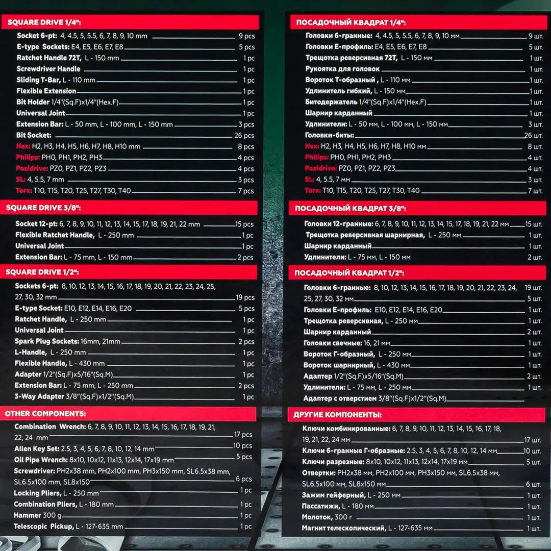 Набор инструментов 142+2пр. 1/4'', 3/8'', 1/2''(6гр.,12гр.) RockFORCE RF-41421+2