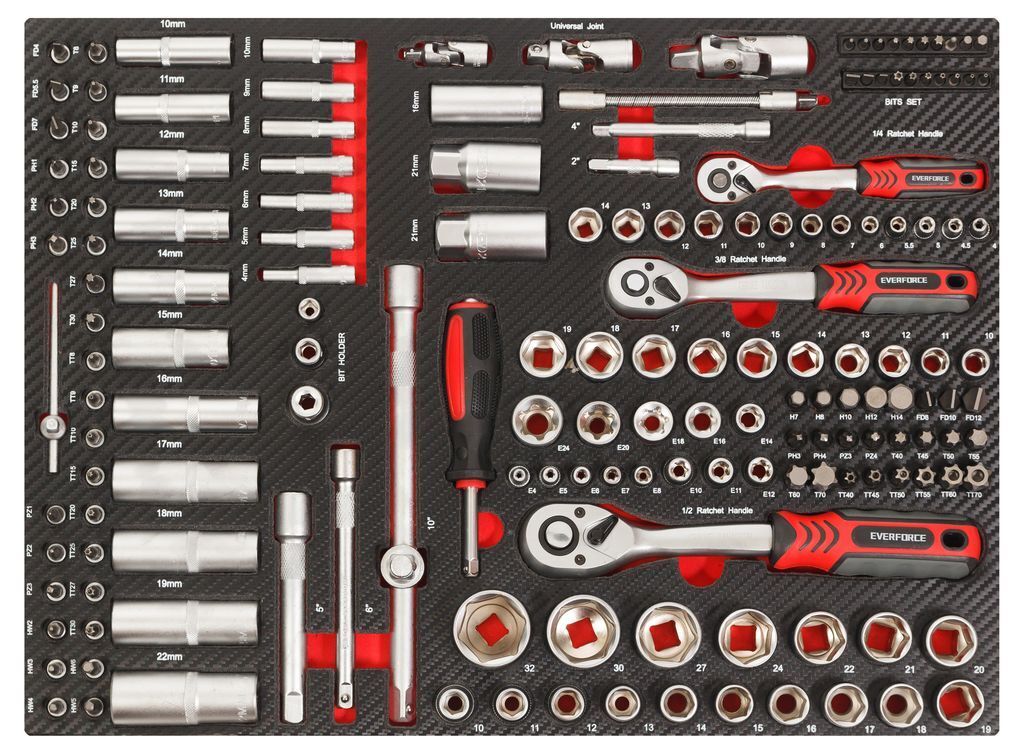 "Торцевые головки 1/2"" (10-32 мм) Торцевые головки 3/8""(10-19 мм) Торцевые головки 1/4"" (4-14 мм) Глубокие торцевые головки 1/2"" Глубокие торцевые головки 3/8"" Глубокие торцевые головки 1/4"" Трещотка (1/2"", 3/8"", 1/4"") Т-образный вороток 1/2"", 3/8"", 1/4"" Кардан 1/2"", 3/8"", 1/4"" Удлинители 1/2"" Удлинители 3/8"" Удлинители 1/4"" Гибкий удлинитель 1/4"" Отвертка под биты 1/4"" Биты (насадки-отвертки) Головки со вставкой (1/4"")