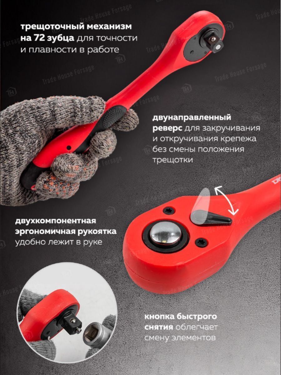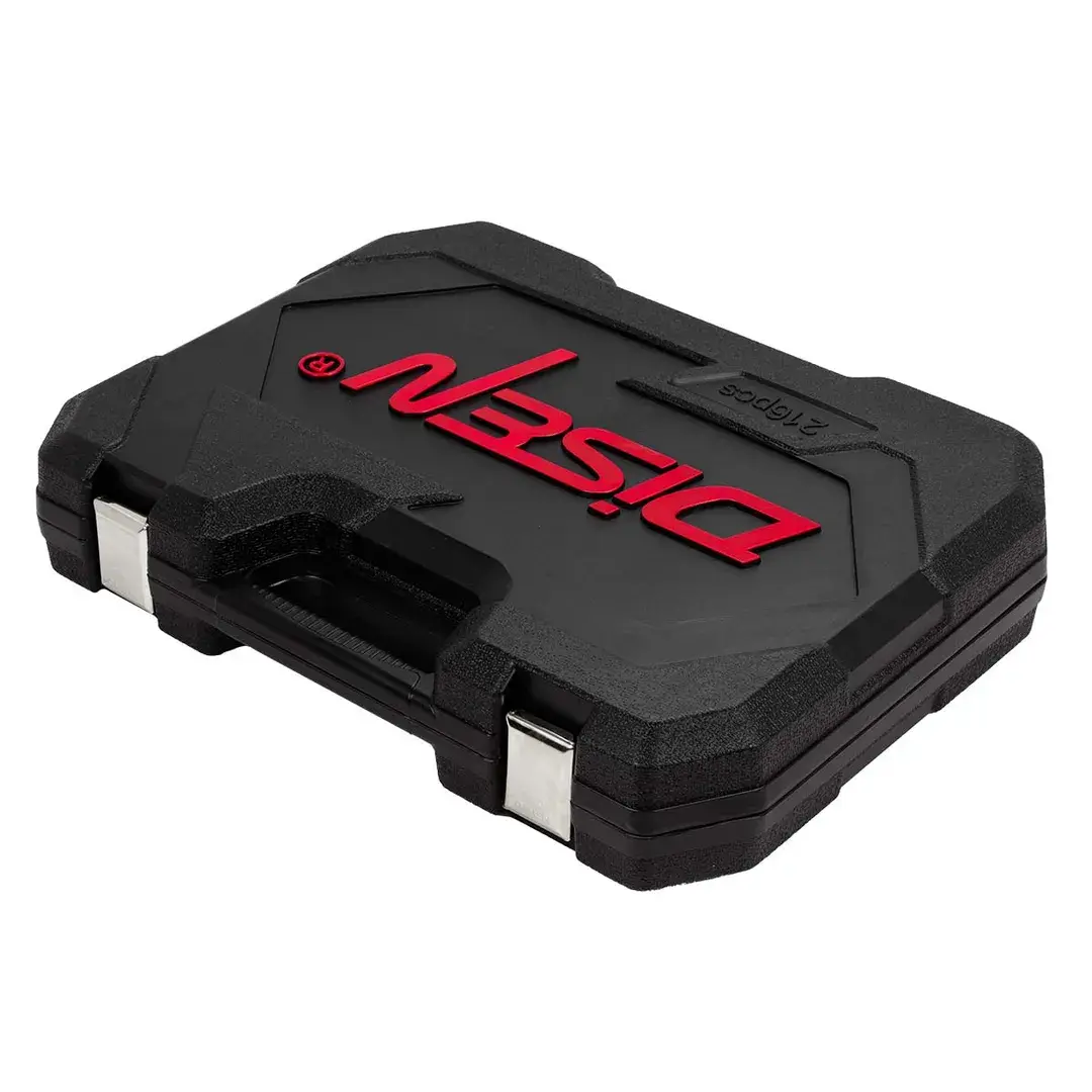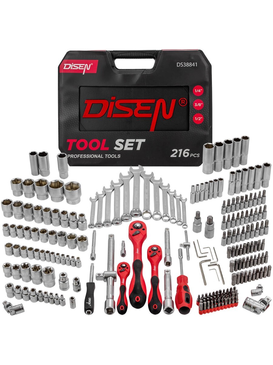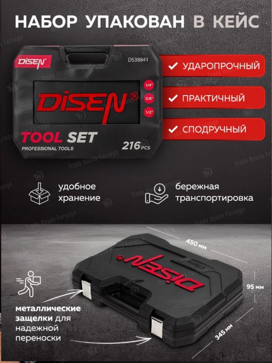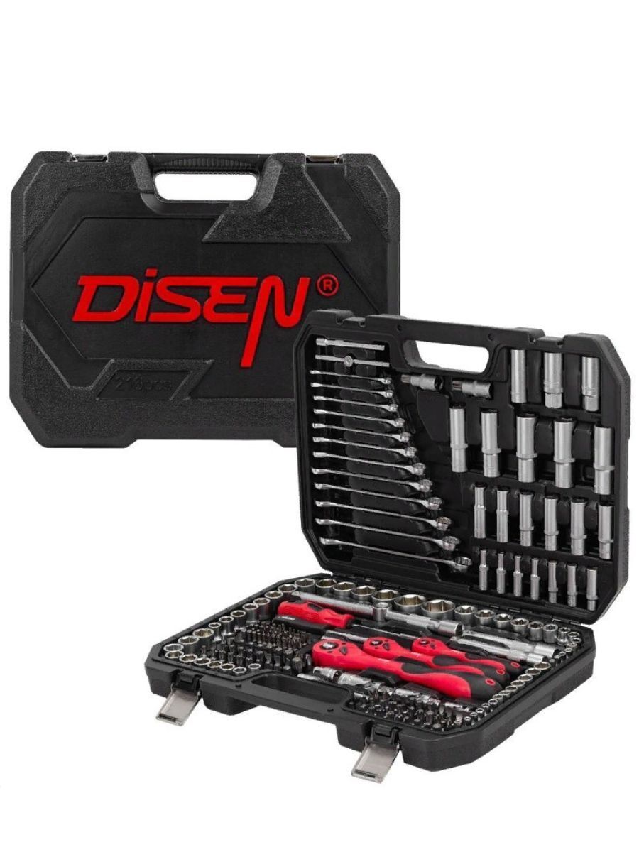 Посадочный квадрат: 1/4", 3/8", 1/2". Тип головок: 6-гранные, 12-гранные, Е-профиль, короткие, глубокие. Комплектация: головки 1/4"короткие 25 мм: 4, 4.5, 5, 5.5, 6, 7, 8, 9, 10, 11, 12, 13, 14 мм; головки 1/4"глубокие 50 мм: 4, 5, 6, 7, 8, 9, 10 мм; головки 1/4"Е-профиль 25 мм: Е4, Е5, Е6, Е7, Е8; головки-биты 1/4"HEX 35 мм: 5.5, 6, 6.5. 7 мм; головки-биты 1/4 TORX 35 мм: T25, T27, T30, T35, T40*2, T45, T50 T27H, T30H, T35H, T40H, T45H, T50H; головки-биты 1/4"Spline 35 мм: M5, M6, M8, M10; головки-биты 1/4"SL 35 мм: 6, 6.5, 8 мм; головки-биты 1/4"РН 35 мм: РН.3, РН.4; головки-биты 1/4"PZ 35 мм: PZ.3, PZ.4; биты 1/4"HEX 25 мм: 3, 4, 5, 6 мм; биты 1/4"TORX 25 мм: T8, Т10, Т15, Т20, Т25, Т8Н, Т10Н*2, Т15Н*2, Т20Н*2, Т25Н*2, Т40Н; биты 1/4"SL 25 мм: 4, 5.5, 6.5 мм; биты 1/4"РН 25 мм: РН.1, РН.2; биты 1/4"PZ 25 мм: PZ.1, PZ.2; биты 1/4"Hex security 25 мм: 3, 4, 5, 6 мм; биты 1/4"Spline 25 мм: М5, М6, М8; биты 1/4"Spanner 25 мм: 4, 6, 8 мм; биты 1/4"Tri-wing 25 мм: 1, 2, 3 мм; биты 1/4"Square bit 25 мм: S1, S2; биты 1/4"Torq set 25 мм: 6, 8, 10; трещотка 1/4"; рукоятка 1/4 150 мм; держатель бит магнитный 1/4"200 мм; вороток 1/4"Т-образный усиленный 115 мм; удлинители 1/4": 50, 100 мм; кардан шарнирный 1/4"; биты 5/16"HEX 30 мм: 5.5, 6, 6.5, 7 мм; биты 5/16"TORX 30 мм: Т25, Т27, Т30, Т35, Т40, Т45, Т50, Т27Н, Т30Н, Т35Н, Т40Н, Т45Н, Т50Н; биты 5/16"SL 30 мм: 6, 6.5, 8 мм; биты 5/16"PH 30 мм: PH.3, PH.4; биты 5/16"PZ 30 мм: PZ.3, PZ.4; биты 5/16"SPLINE 30 мм: М5, М6, М8, М10; головки-биты 1/2"TORX 55 мм: Т55, Т60; головки 3/8"короткие 12-гранные 28 мм: 10, 11, 12, 13, 14, 15, 16, 17, 18, 19 мм; головки 3/8"глубокие 63 мм: 10, 11, 12, 13, 14, 15 мм; головки 3/8"Е-профиль 28 мм: Е10, Е11, Е12, Е14, Е16, Е18; головка 3/8"свечная 18 мм; трещотка 3/8"; удлинитель 3/8"125 мм; кардан щарнирный 3/8"; головки 1/2"короткие 38 мм: 10, 11, 12, 13, 14, 15, 17, 19, 20, 21, 22, 24, 27, 30, 32 мм; головки 1/2"глубокие 77 мм: 16, 17, 18, 19, 22 мм; головки 1/2"Е-профиль 38 мм: Е20, Е22, Е24; головки свечные 1/2": 16, 21 мм; трещотка 1/2"; удлинители 1/2": 125, 250 мм; кардан шарнирный 1/2"; вороток 1/2"Т-образный 250 мм; битодержатель 1/4"(F)*1/4"(F) (HEX); битодержатель 3/8"(F)*5/16"(F) (HEX); битодержатель 1/2"(F)*5/16"(F) (HEX); ключи комбинированные рожково-накидные: 8, 10, 11, 12, 13, 14, 15, 16, 17, 18, 19, 22 мм; ключи шестигранные Г-образные: 1.27, 1.5, 2, 2.5, 3, 4, 5 мм; Пластиковый кейс с металлическими защелками.