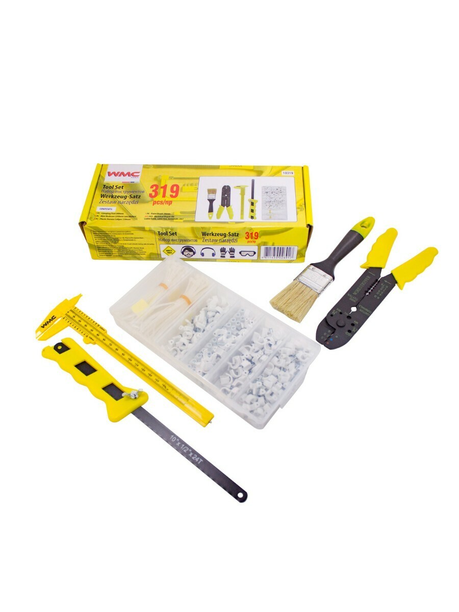 Состав: 1 шт. - Клещи для электрика 200мм 1 шт. - Ножовка по металлу (лезвие 250мм) 1 шт. - Штангенциркуль 150мм 1 шт. - Кисть 38мм 315 шт. - Комплект для прокладки кабелей