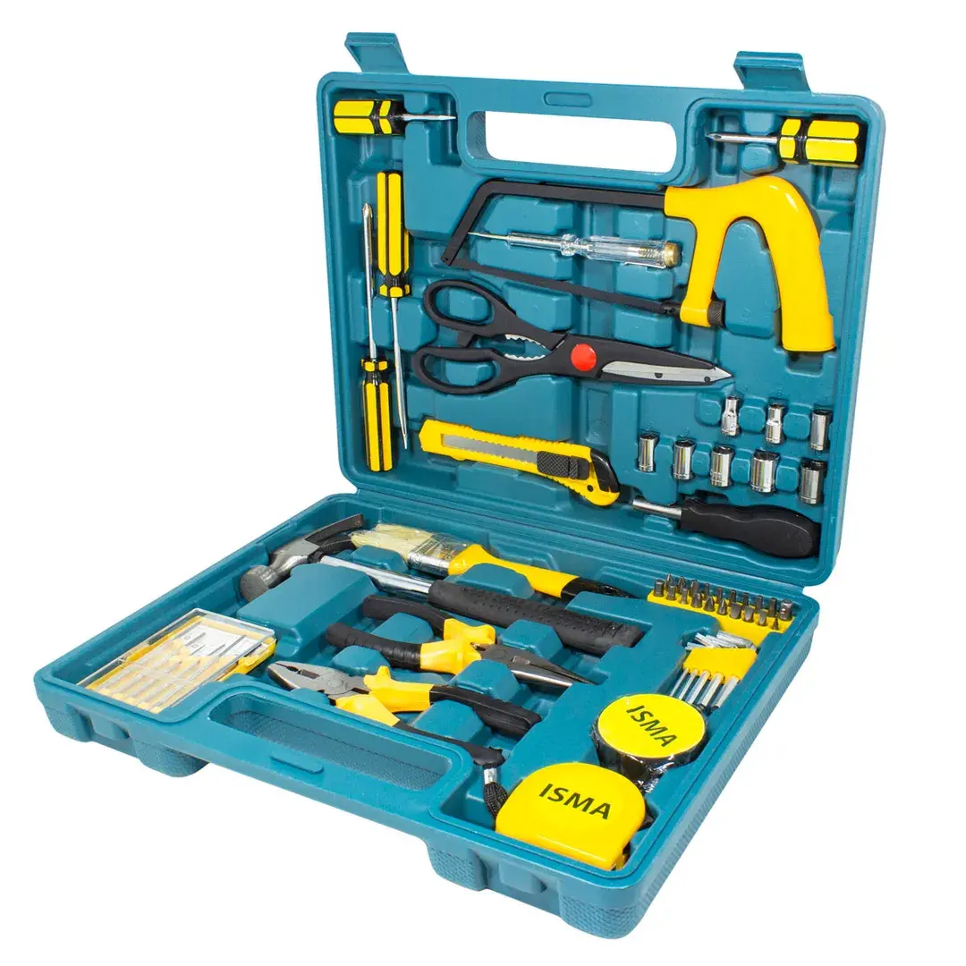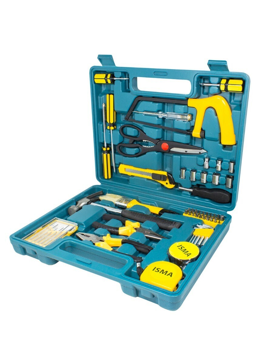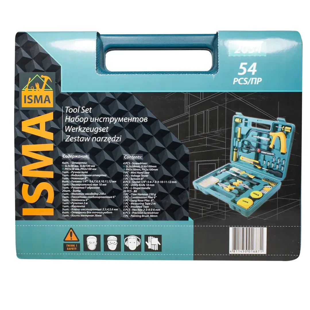Набор инструментов ISMA Tools - это универсальный комплект, который включает в себя все необходимые инструменты для решения бытовых задач. Комплектация: 4шт. - Отвертки: SL5x38mm, SL6x100mm, PH1x38mm, PH2x100mm 1шт. - Ручная пила 1шт. Индикаторная отвертка 1шт. - Ножницы 8" 8шт. - 1/4"Головки: 5,6,7,8,9,10,11,12мм 1шт. - Универсальный нож 18 мм 1шт. - Рукоятка Г-образная 20шт. - Биты 1шт. - Молоток-гвоздодер 230г 1шт. - Пассатижи комбинированные 6" 1шт. - Утконосы 6" 1шт. - Рулетка 2м 1шт. - Изолента 5шт. - Ключи шестигранные: 2,3,4,5,6мм 6шт. - Отвертки для точных работ 1шт. - Кисть малярная 38мм Биты 25мм S: 0-1-2: SL:4.0-5.0-7.0мм PH:1-2 PZ:1- 2 Hex: H3-H4-H5-H6мм Torx: Т-15-T20-T25-T27-T30; AD-1шт