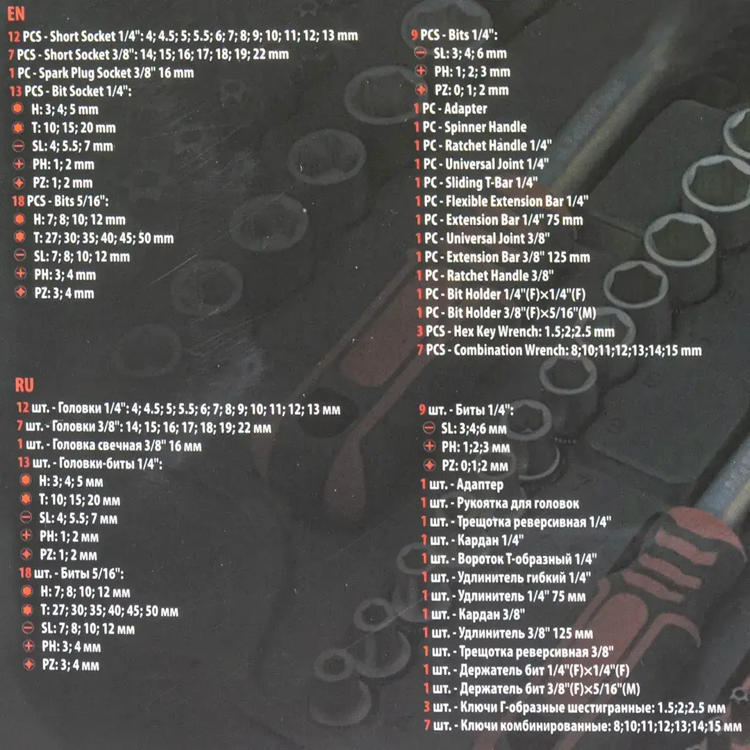 Набор инструментов 82 пр. 1/4''3/8''(6гр.)(4-22мм) FORCEKRAFT FK-4821-5DS-м