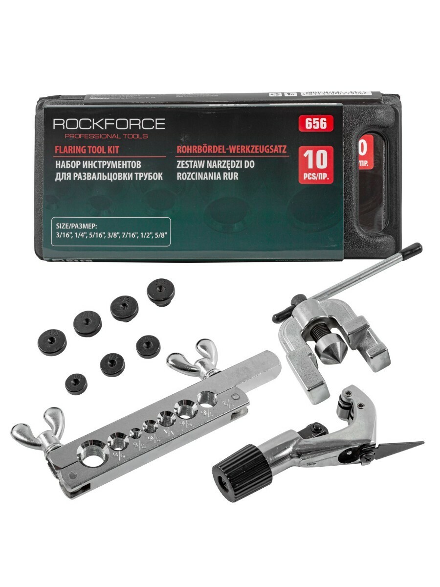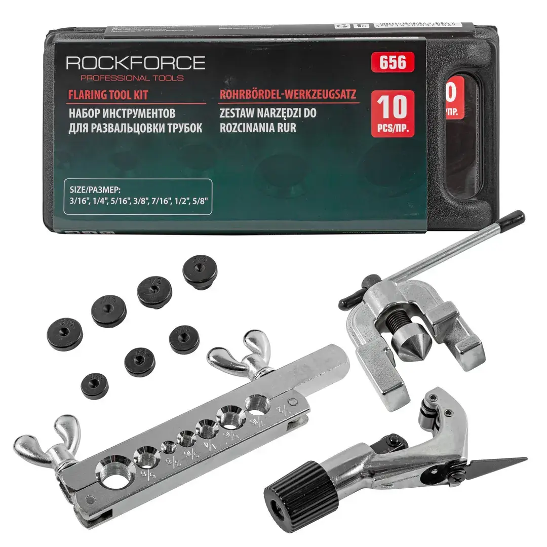 Набор для развальцовки труб 10 предметов, в кейсе удобен в использовании за счет обширного комплекта. Модель подходит для работы с тонкостенными металлическими трубами. Для транспортировки есть специальный пластиковый кейс. Технические характеристики набора развальцовка Габариты без упаковки, мм - 328х114х40; Адаптеры для развольцовки трубок - 3/16"", 1/4"", 5/16"", 3/8"", 7/16"", 1/2"", 5/8""; В наличии имеется труборез.