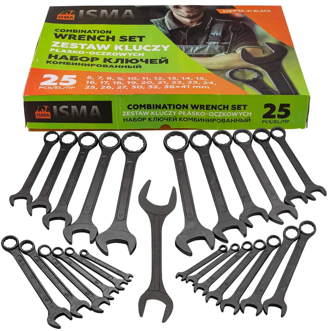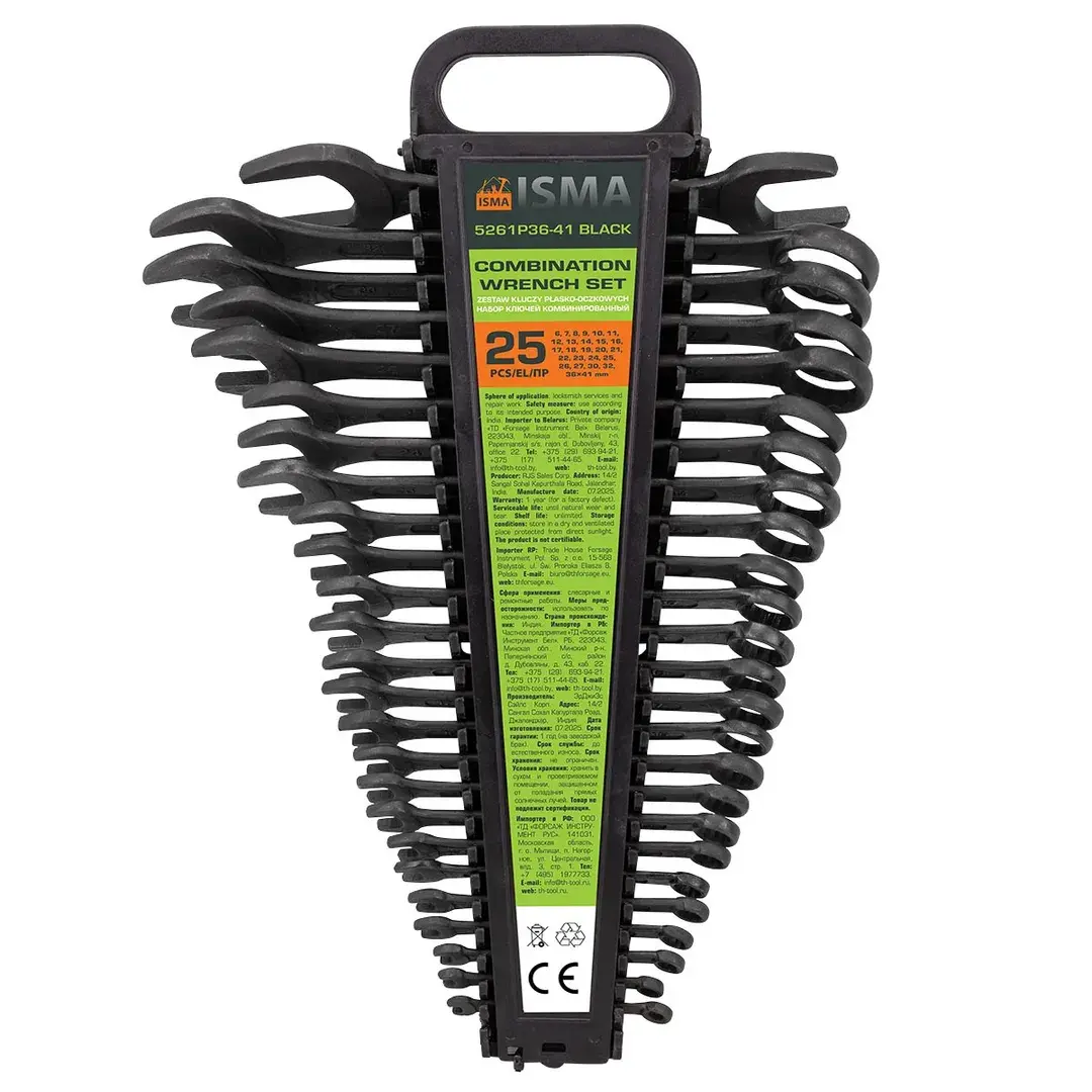 Ключи комбинированныеISMA-5261P36-41 – универсальные гаечные ключи, совмещающие в себе функционал и преимущества рожковых и накидных ключей. Зевы комбинированных ключей имеют одинаковые размеры. Ключи гаечные с открытым и кольцевым зевами предназначены для монтажа либо демонтажа резьбовых соединений. Набор изготовлен из высококачественной стали Cr-V. Ключи фиксируются в пластиковом держателе. Комплектация: 6, 7, 8, 9, 10, 11, 12, 13, 14, 15, 16, 17, 18, 19, 20, 21, 22, 23, 24, 25, 26, 27, 30, 32, 36-41 рожковый.