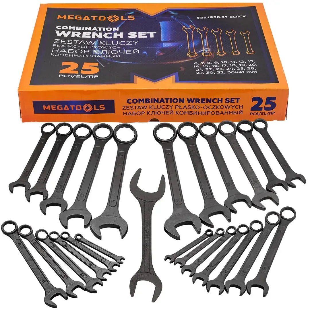 Ключи комбинированные MT-5261P36-4 – универсальные гаечные ключи, совмещающие в себе функционал и преимущества рожковых и накидных ключей. Зевы комбинированных ключей имеют одинаковые размеры. Ключи гаечные с открытым и кольцевым зевами предназначены для монтажа либо демонтажа резьбовых соединений. Набор изготовлен из высококачественной стали Cr-V. Ключи фиксируются в пластиковом держателе. Комплектация: 6, 7, 8, 9, 10, 11, 12, 13, 14, 15, 16, 17, 18, 19, 20, 21, 22, 23, 24, 25, 26, 27, 30, 32, 36-41 рожковый.