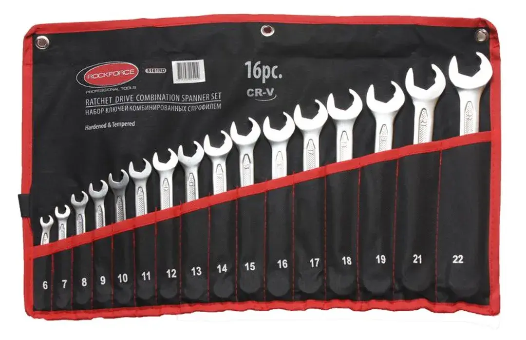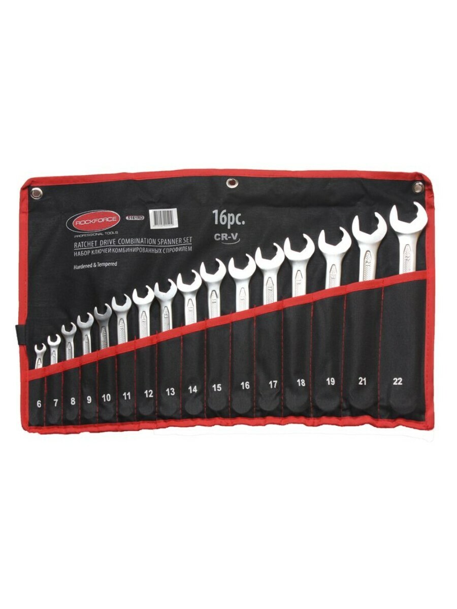 Набор ключей комбинированных с профилем "Ratchet Drive"-"быстрый ключ", 16пр. (6-19, 21, 22мм), на полотне Rock FORCE RF-5161RD RF-5161RD