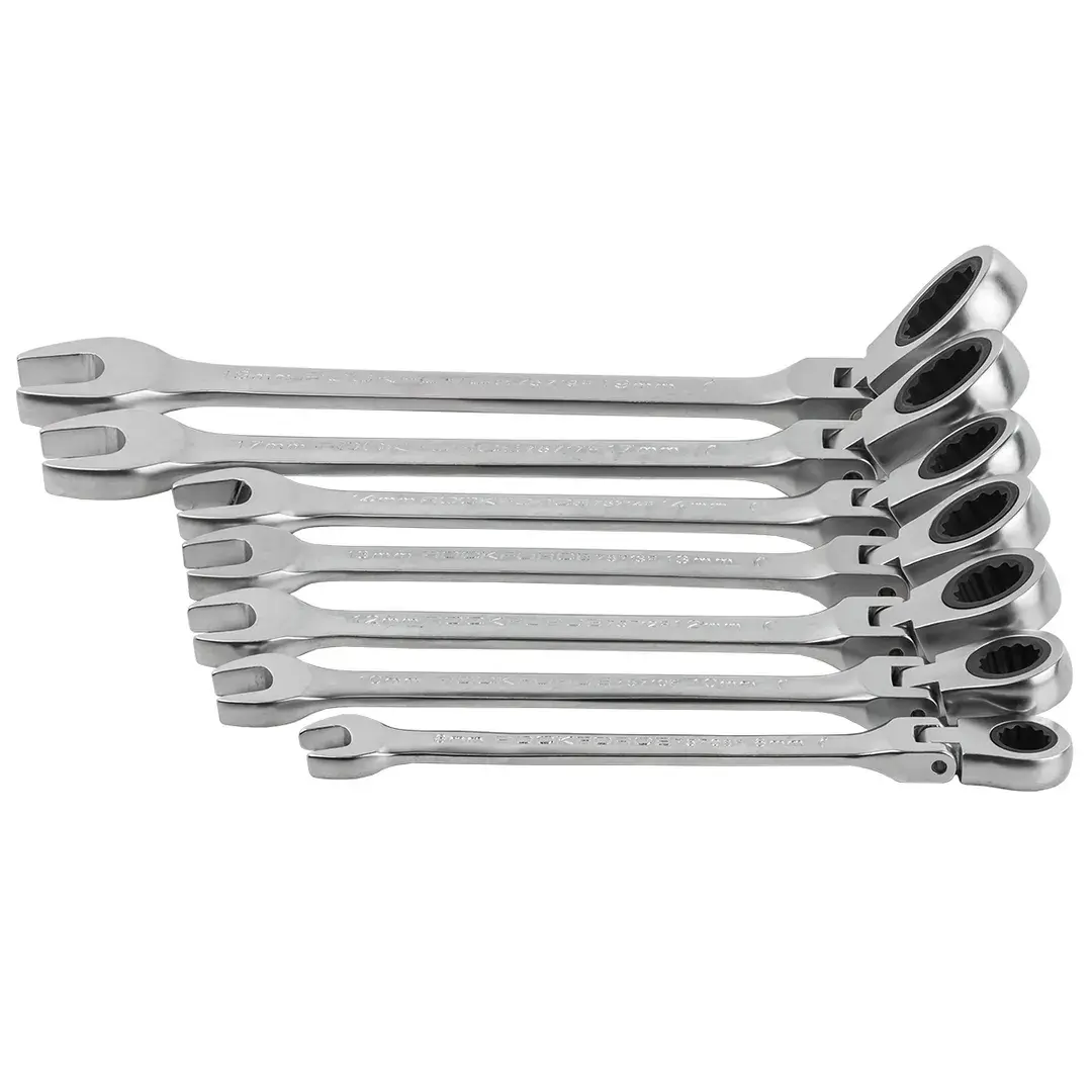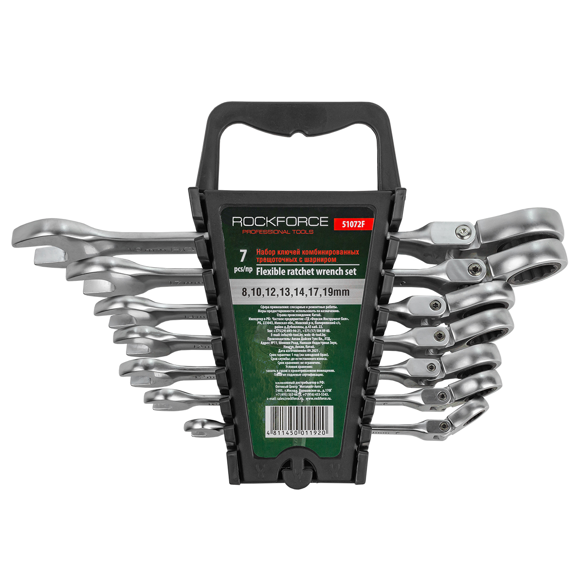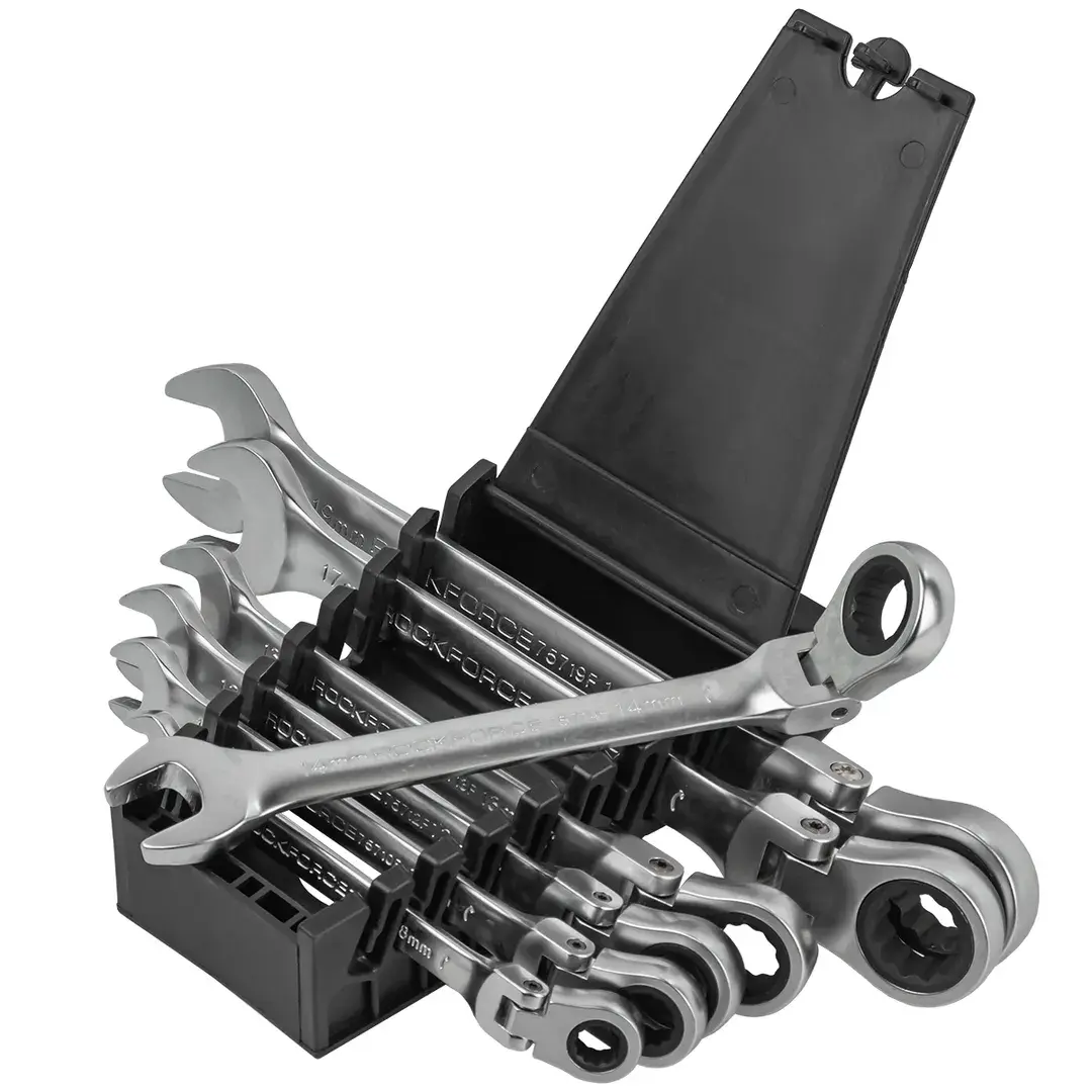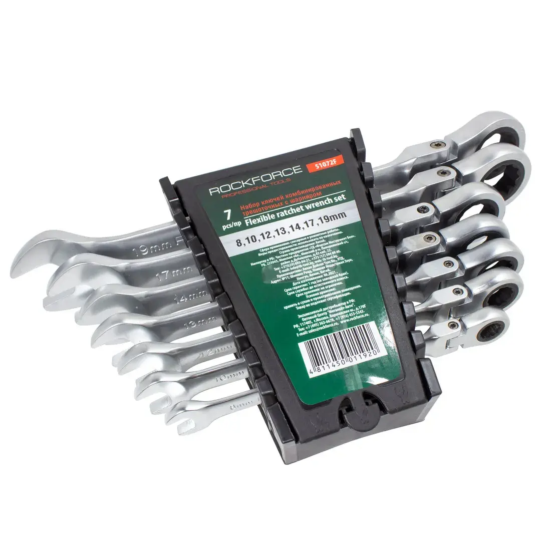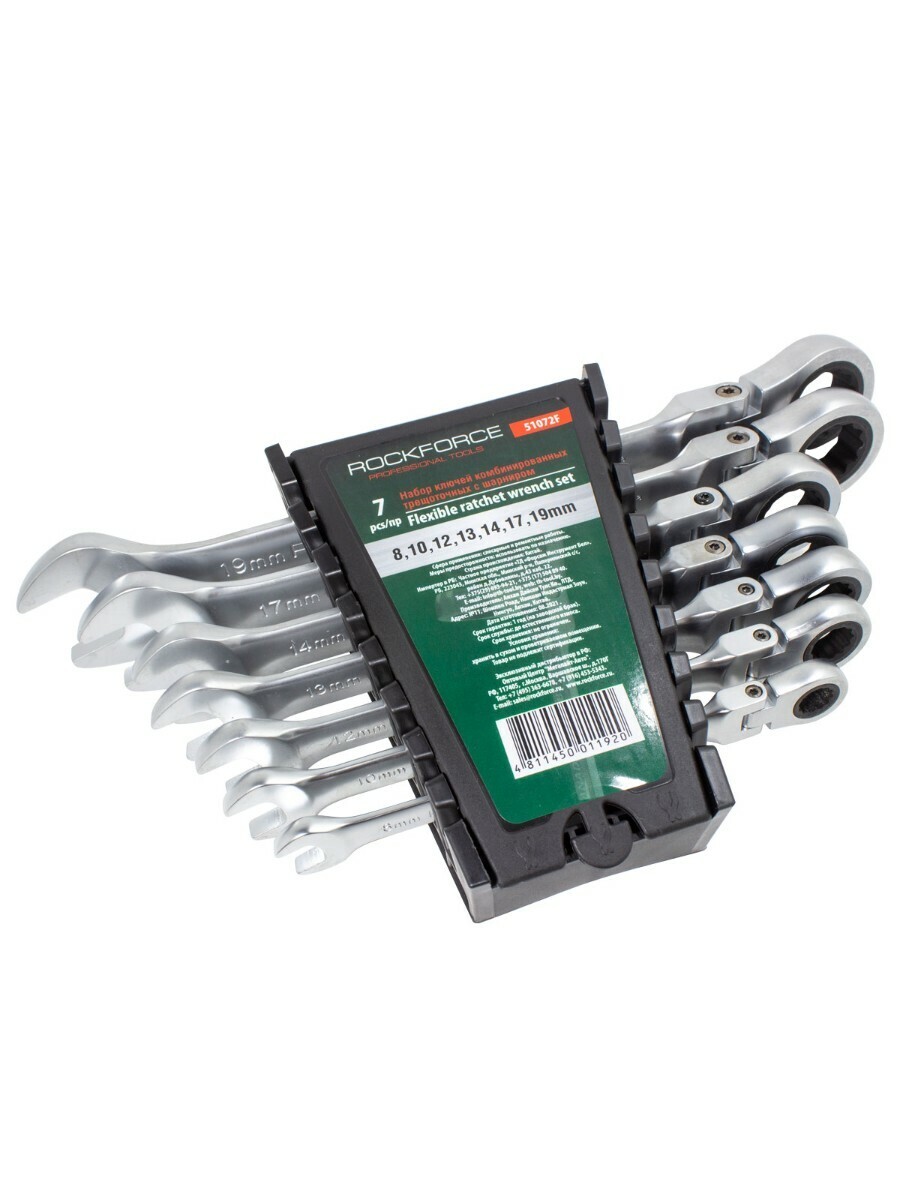 Набор ключей комбинированных трещоточных с шарниром 7пр.(8,10,12,13,14,17,19мм), в пластиковом держателе Rock FORCE RF-51072F RF-51072F